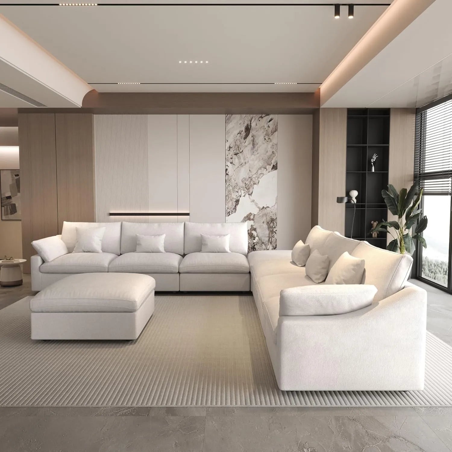 Ce canapé modulable aux accoudoirs inclinés de façon unique offre une élégance et un confort inégalés.