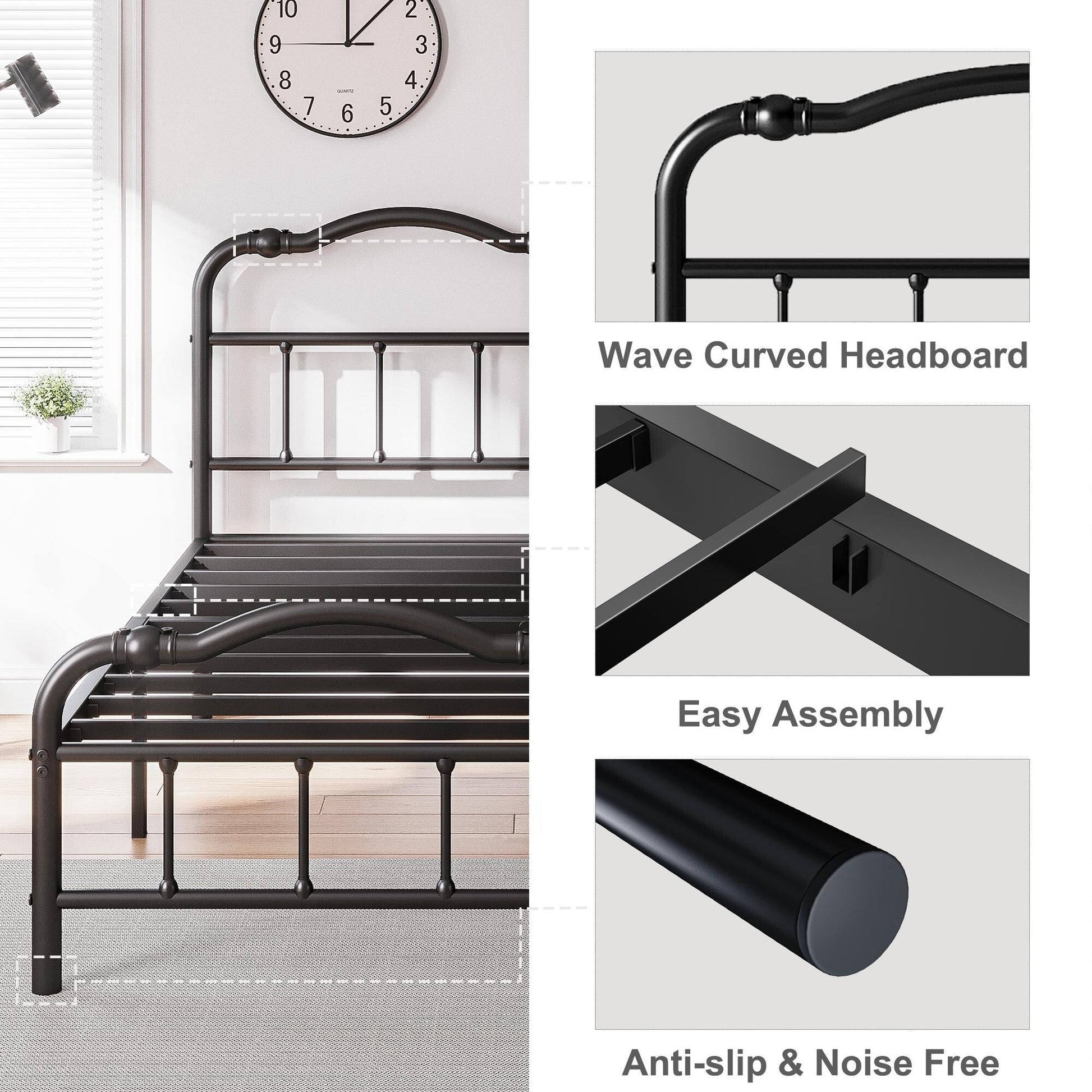 14 In High Heavy Duty Metal Bed Frame with Vintage Style, Supports Up To 2500lbs, Easy Assembly and No Squeak