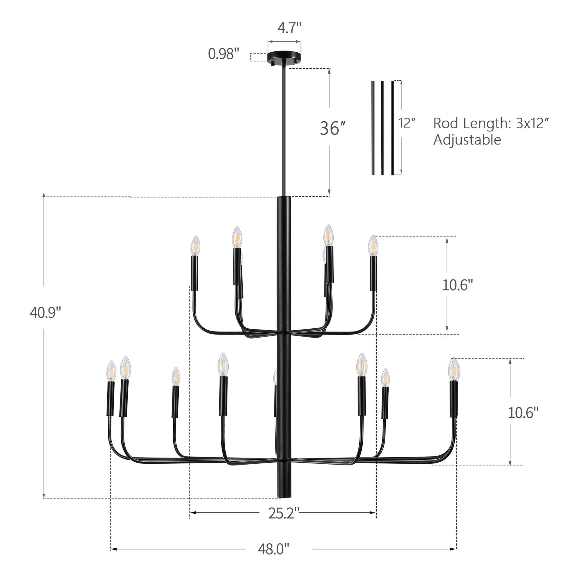 - Lamping: 15 bulbs required, E12 base bulb socket, 60W 120V, various choices(bulb not included)