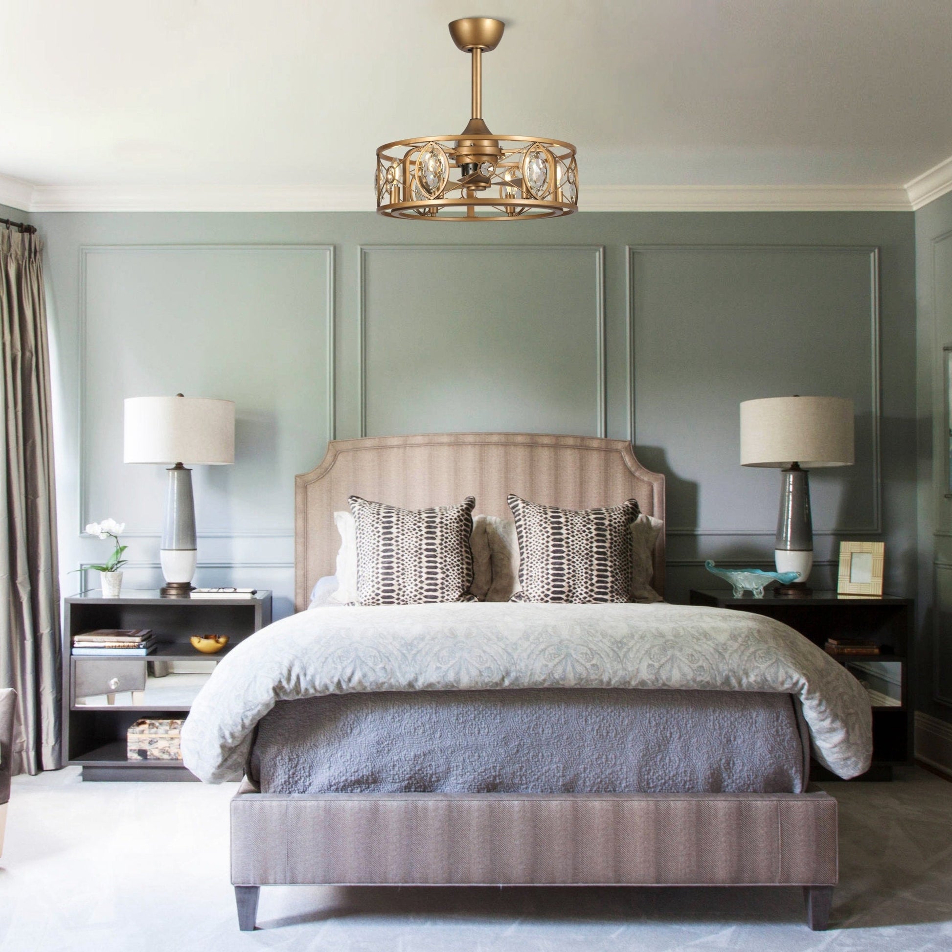 22 Modern Crystal Caged Ceiling Fan Chandelier with Remote