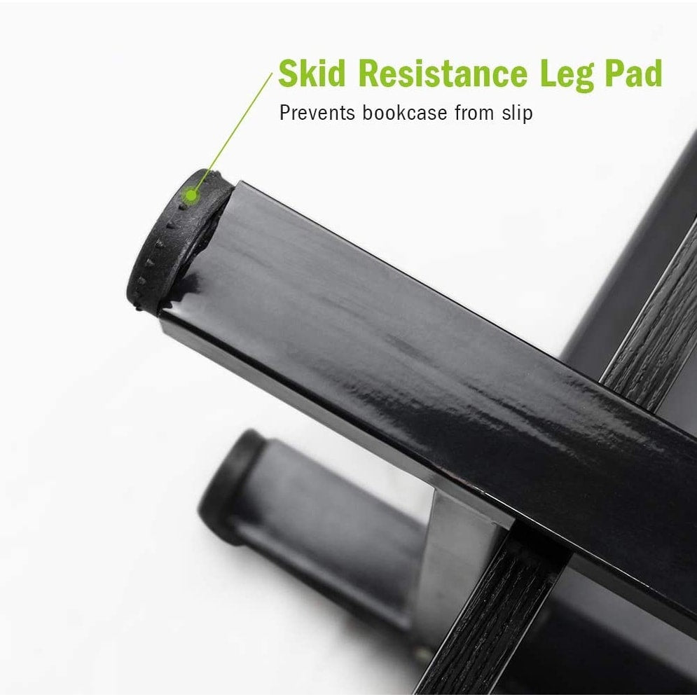 - This open design bookcase is a budget-friendly addition to any room in need of more storage. The adjustable pads provide balance for different height needs and uneven ground conditions.