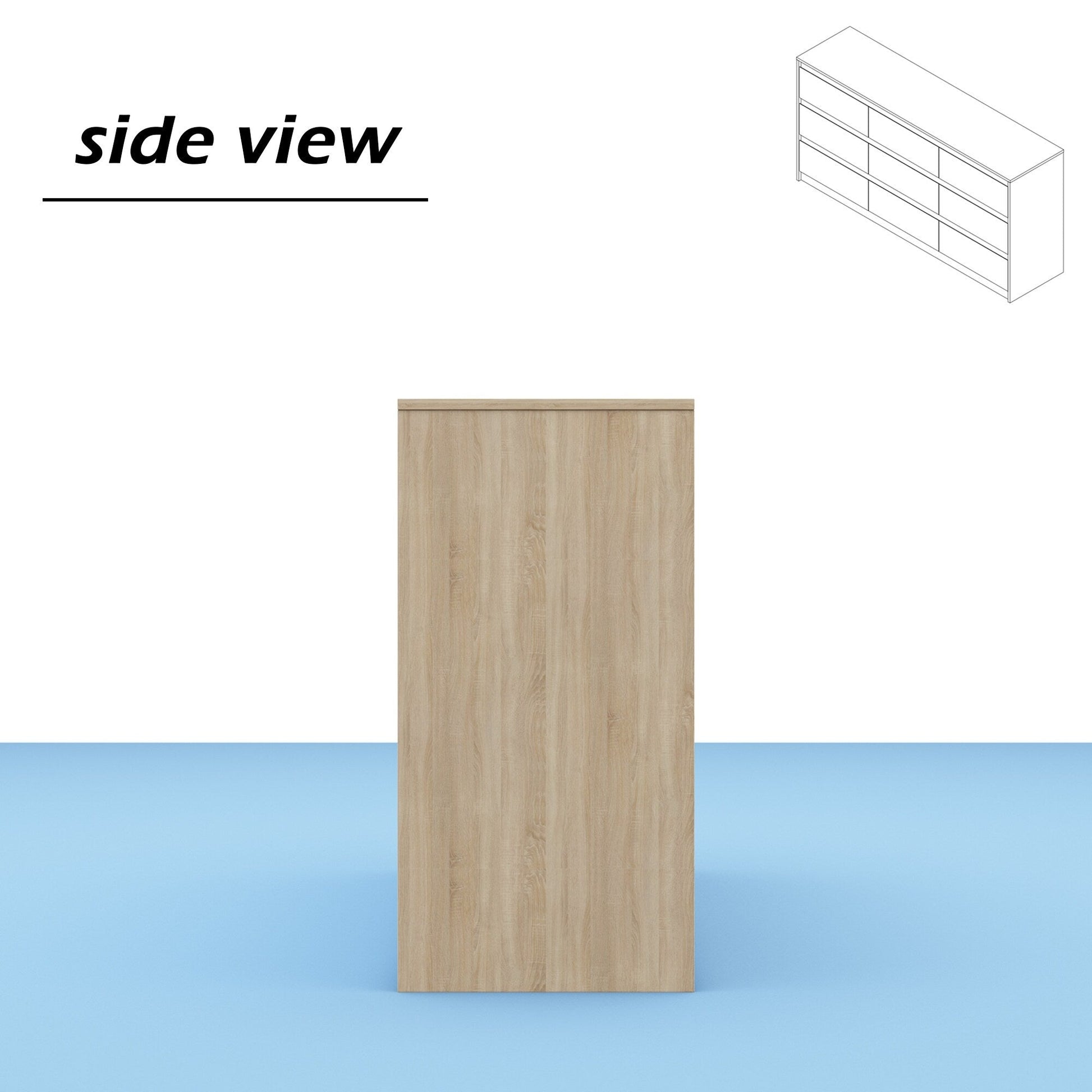 Streamline your storage and give your living space a modern and cohesive look with the Timechee 63'W 9 Drawer Dresser Accent Dresser. Its sleek design and spacious nine drawers provide ample room to organize everything from delicates to bulky clothing items. Each drawer is equipped with metal glides and built-in safety stops for easy and smooth movement, while the handle-free design and extra high drawer sides ensure functionality and spaciousness. Made from engineered wood, this dresser is easy to clean and resistant to water, scratches, and stains, making it perfect for busy families or college living.