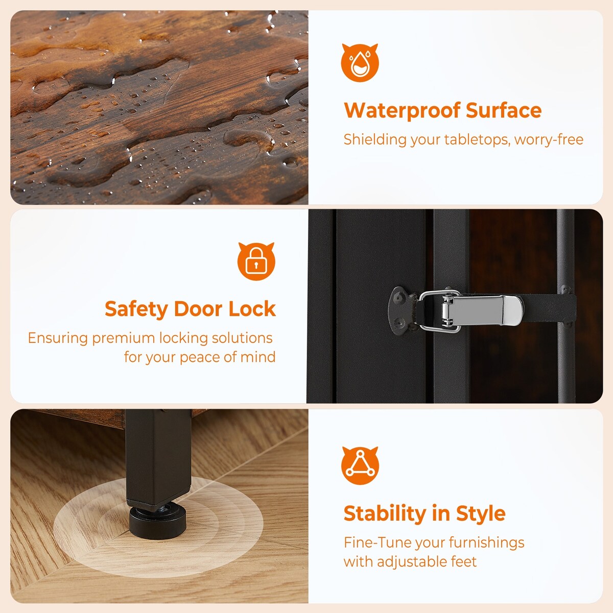 【Two Room & Magnetic Door Buckle】Our large dog crate end table is designed with a removable divider that can keep two medium dogs and can also put dog food on the side. The divider can also be removed to accommodate a large size dog.
