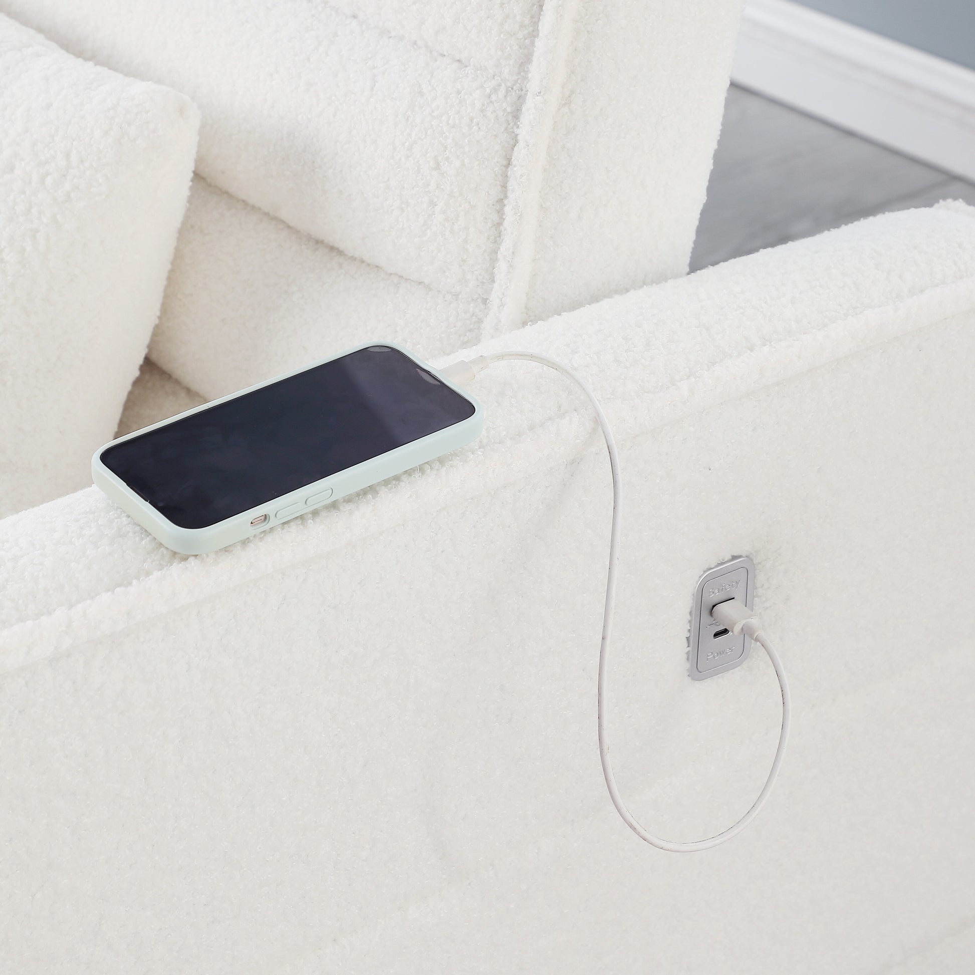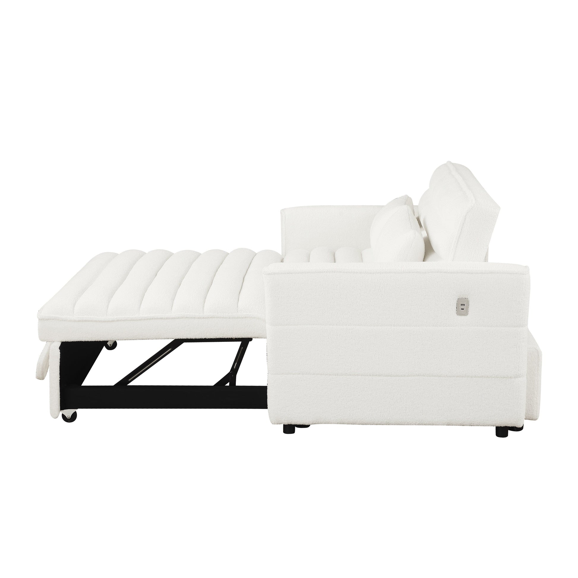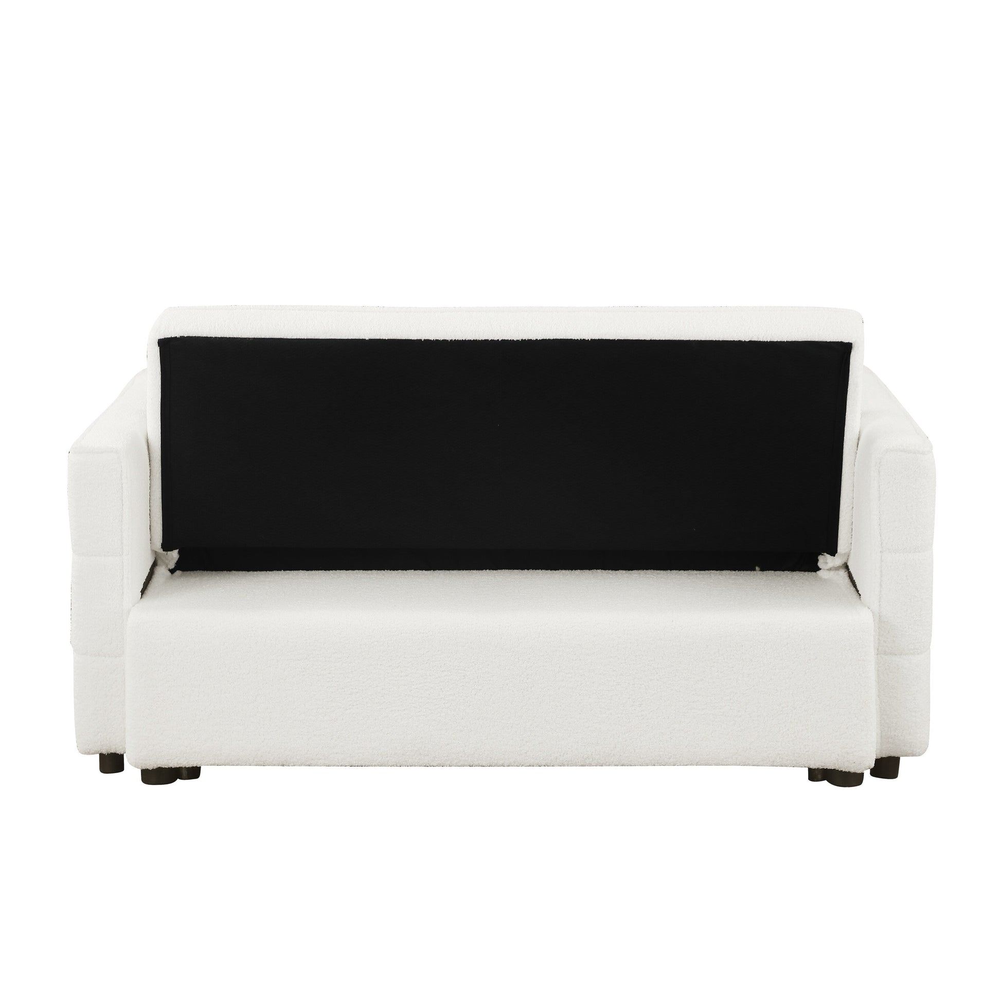 Beige 55.12 Boucle Loveseat Convertible Pull-Out Sofa Bed with Adjustable Back and 2 Waist Pillows for Living Room