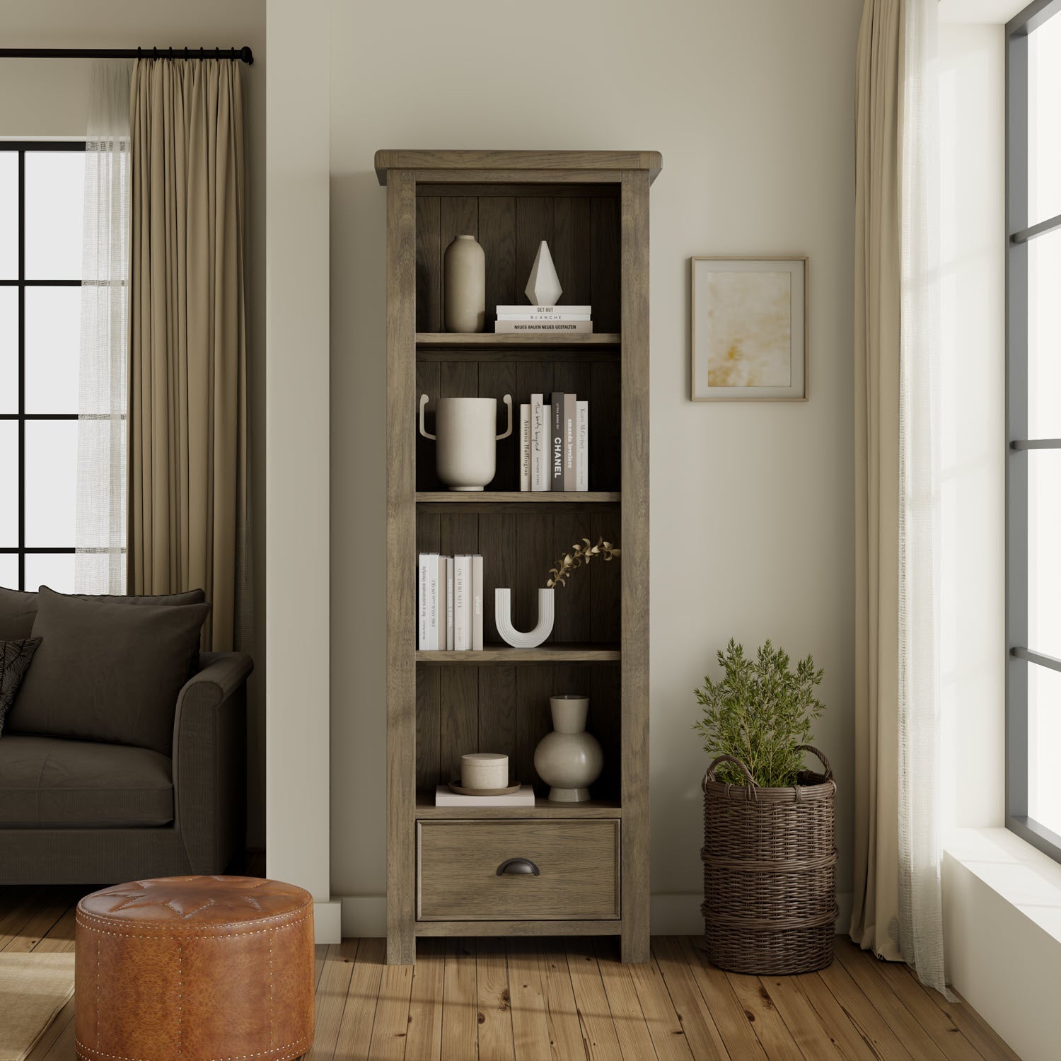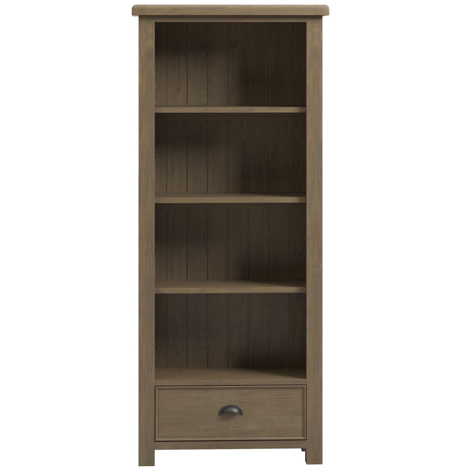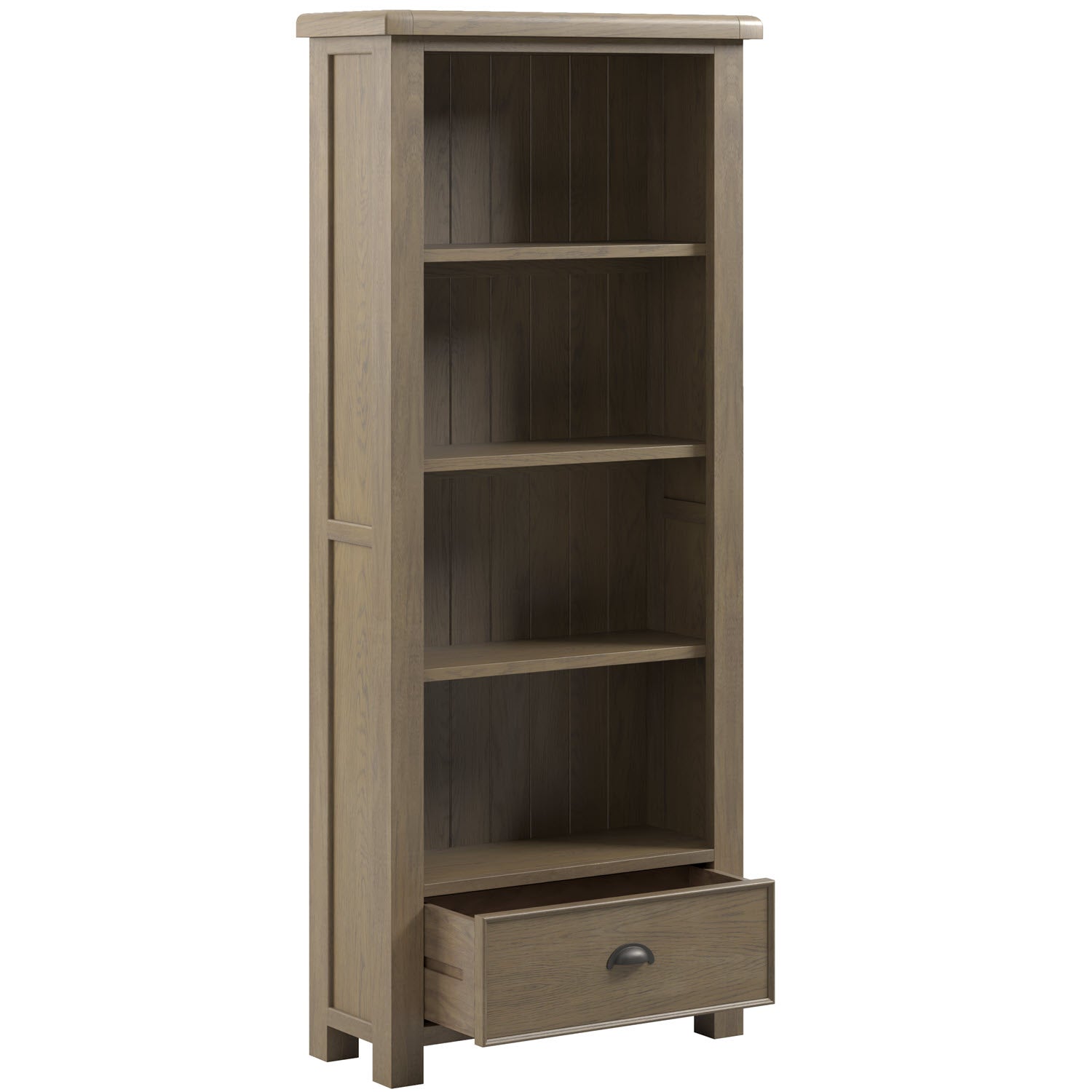 Notre nouvelle gamme « Salisbury » est proposée en finition chêne gris délavé avec un plateau épais aux angles arrondis. Le charme traditionnel d'une ferme s'allie à une touche de modernité. Cette bibliothèque ou vitrine aux dimensions soignées est dotée de 3 étagères réglables et d'un tiroir pratique en bas, muni d'une poignée en forme de tasse. Livrée entièrement assemblée.