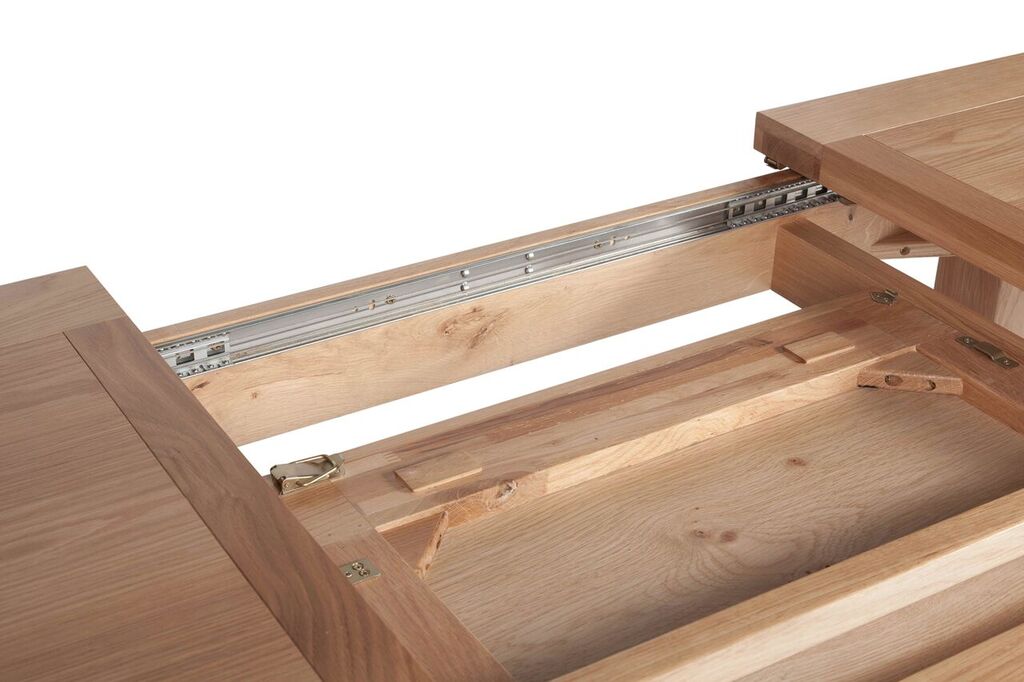 Cette table est magnifiquement conçue, réalisée avec savoir-faire et assemblage de qualité. Son plateau et ses pieds épais de 45 mm sont soigneusement laqués avec une finition laquée de haute qualité qui protège le bois des chocs et des taches. Elle sublime et sublime la beauté naturelle du veinage du chêne, créant l'effet chaleureux et riche illustré. Elle sublimera n'importe quelle pièce et s'harmonisera parfaitement avec d'autres pièces de la même gamme. Cette table à manger extensible constitue une pièce maîtresse élégante et luxueuse pour toute salle à manger et offre une sensation incomparable de luxe discret et de sophistication subtile. Pratique et facile à rallonger pour recevoir grâce à un simple système d'extension papillon. Elle repose sur d'élégants pieds fuselés et est livrée partiellement assemblée.