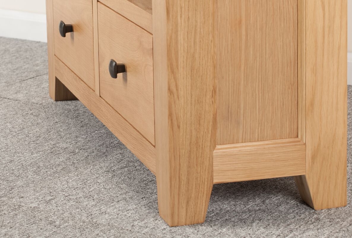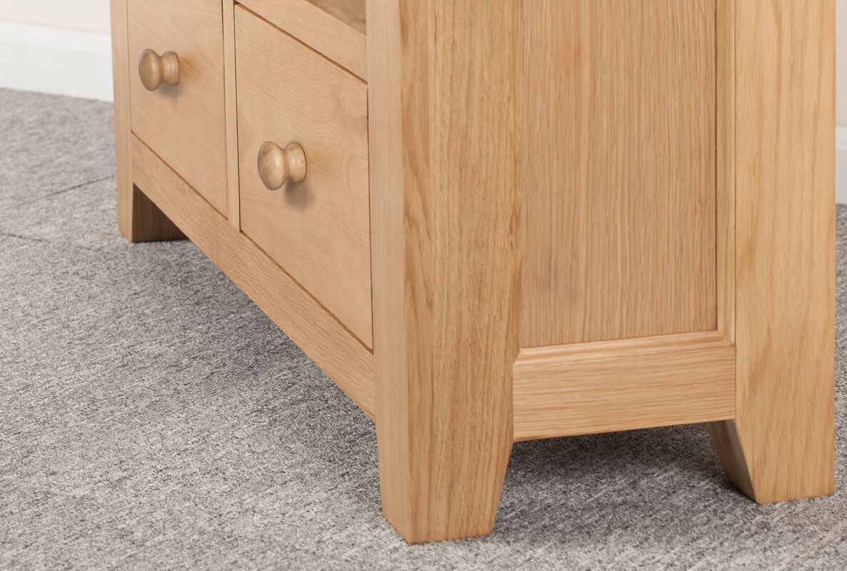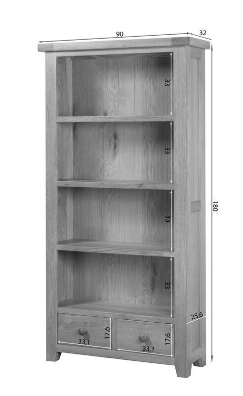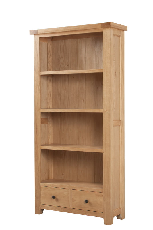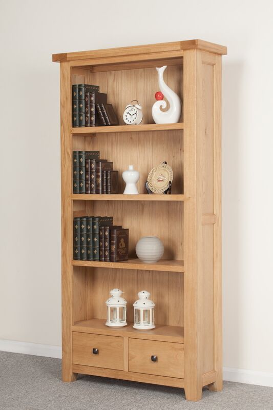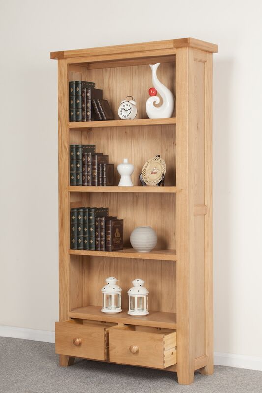 L'une des trois bibliothèques de cette gamme. Robuste et résistante, elle offre l'avantage supplémentaire de ses généreuses étagères fixes et de ses deux tiroirs, avec des boutons contemporains en métal ou en bois traditionnels. Finition chêne clair avec des bords carrés épais. Un best-seller. Commandez dès maintenant pour une livraison rapide.