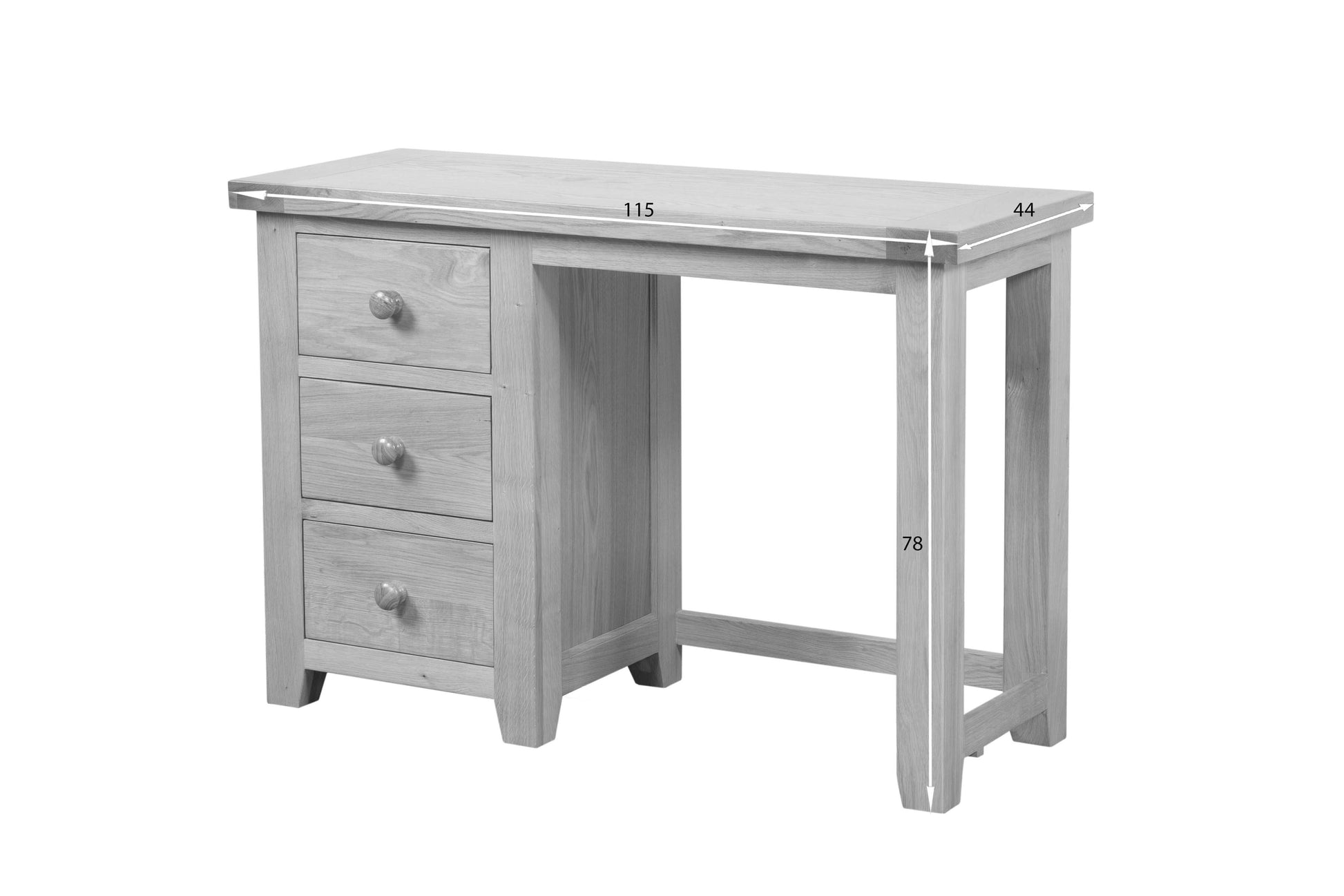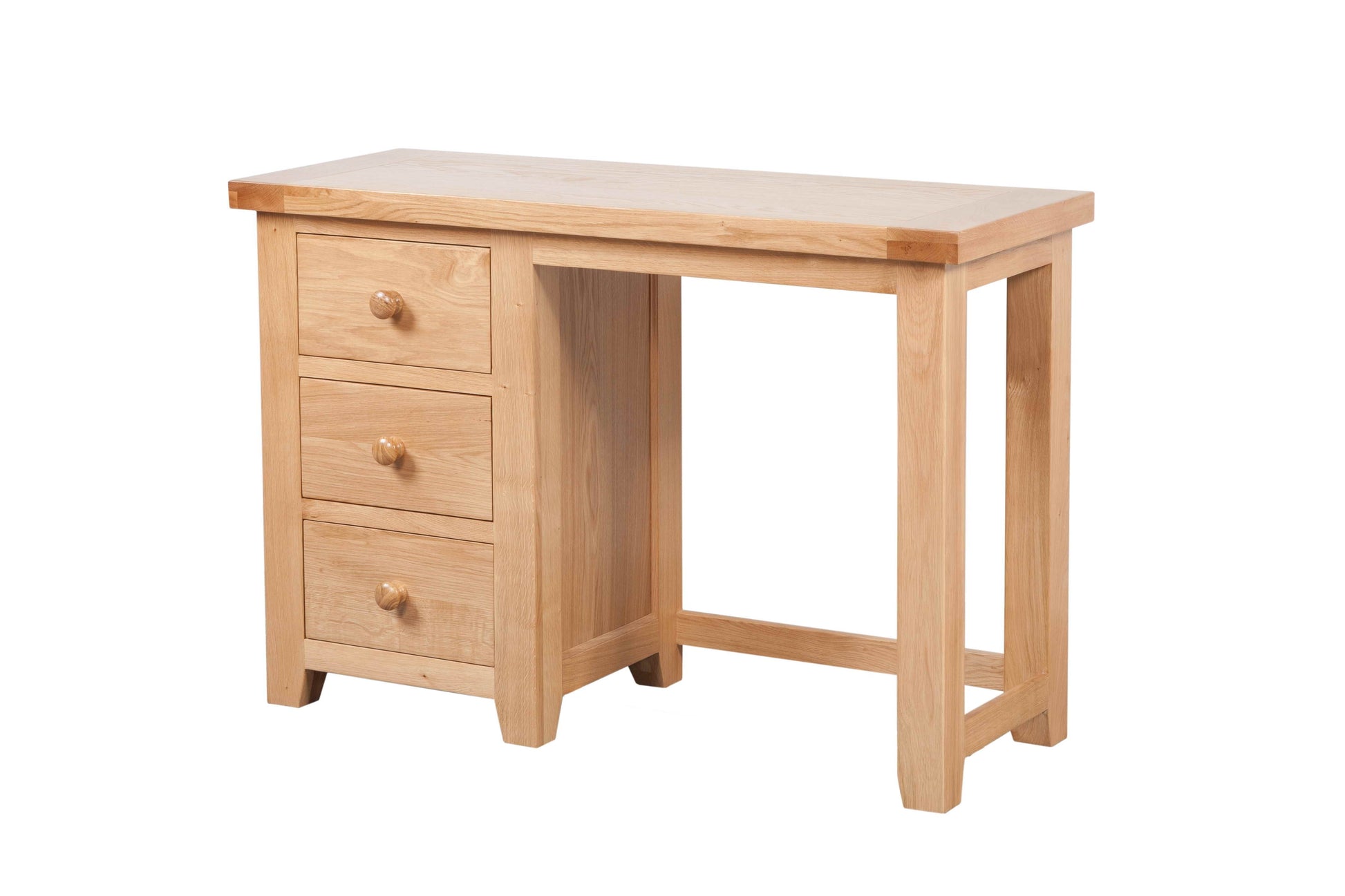 Bureau ou coiffeuse ? À vous de choisir ! Les trois tiroirs sont dotés de poignées traditionnelles en bois ou contemporaines en métal. Leur design imposant aux bords carrés et leur finition chêne clair font de ce meuble un élément incontournable de notre gamme Cotswold, toujours aussi populaire. Commandez dès maintenant pour une livraison rapide.