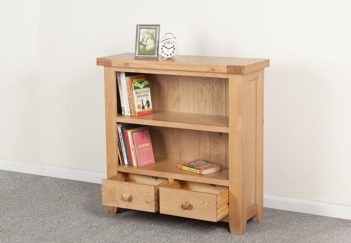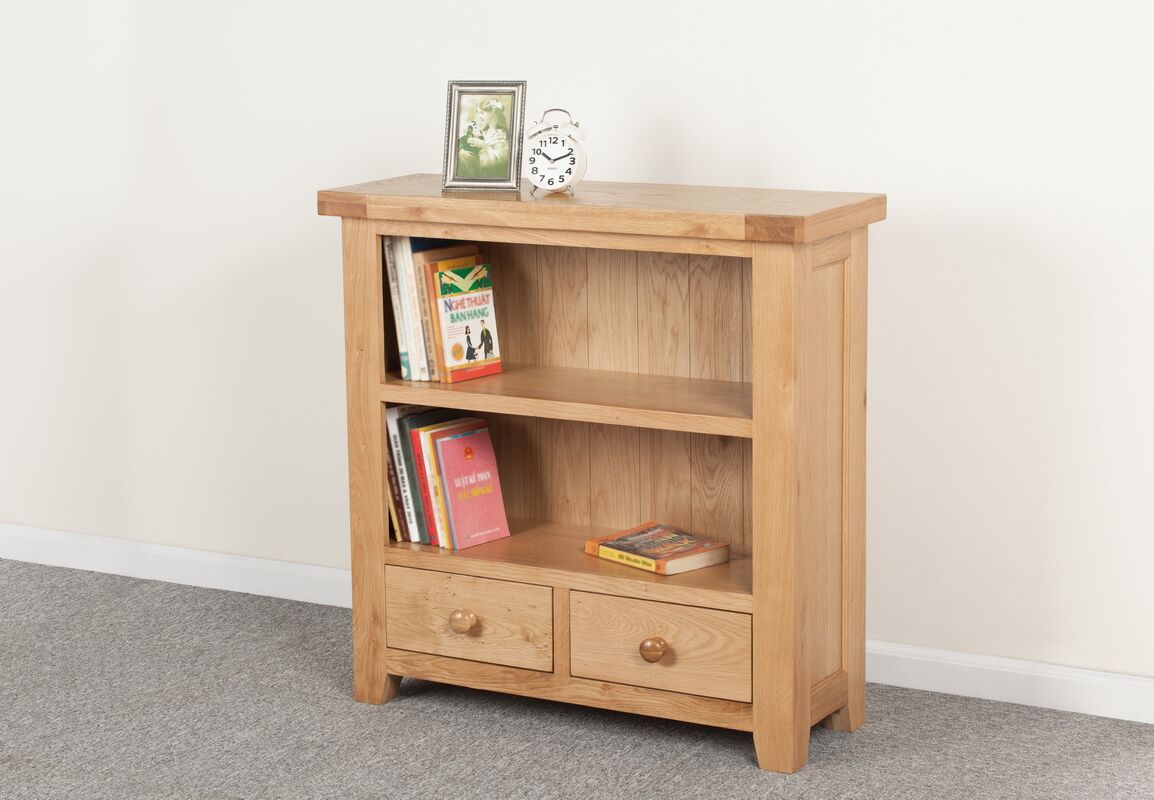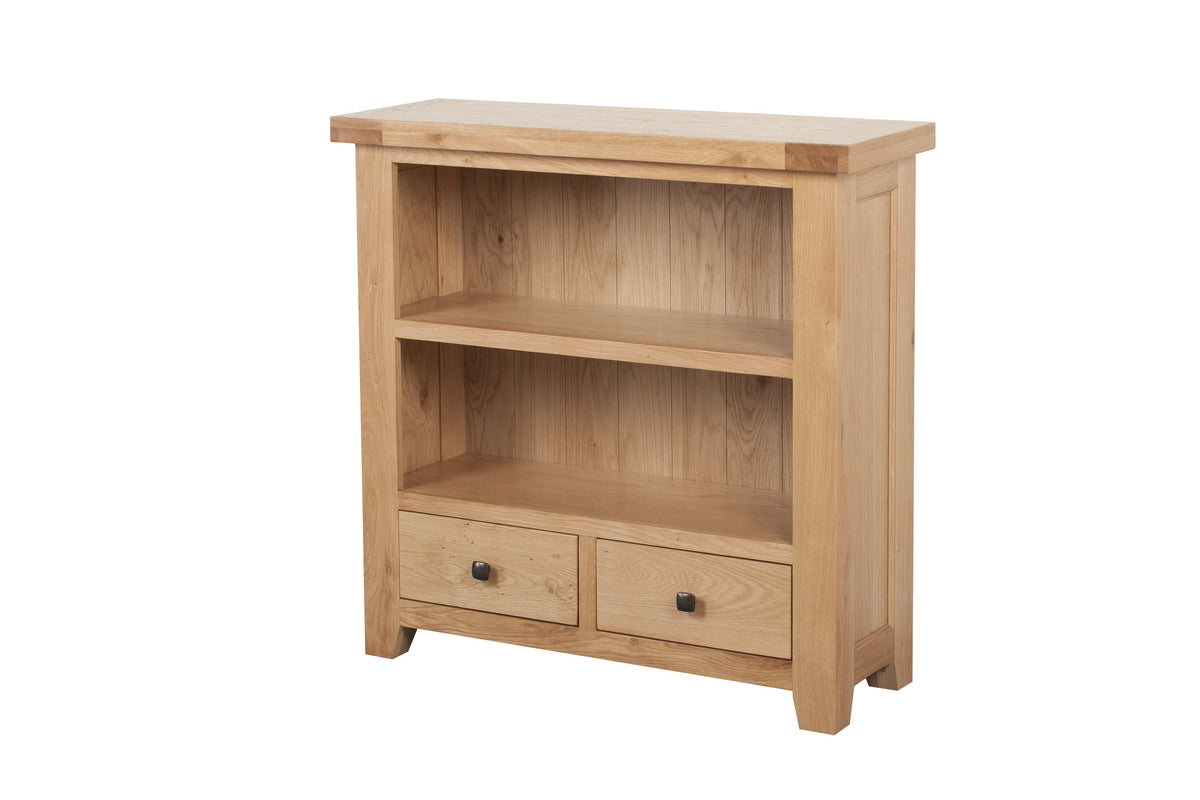 L'une des trois bibliothèques de cette gamme. Robuste et résistante, cette bibliothèque, dotée d'une étagère fixe généreusement espacée, offre l'avantage supplémentaire de deux tiroirs avec, au choix, des boutons en métal contemporain ou en bois traditionnel. Finition chêne clair avec des bords carrés épais. Un best-seller. Commandez dès maintenant pour une livraison rapide.