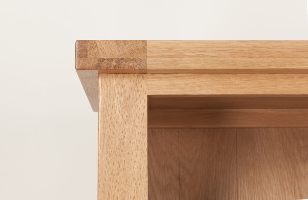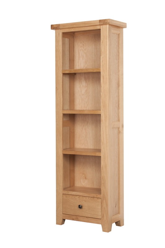 L'une des trois bibliothèques de cette gamme. Robuste et résistante, cette bibliothèque aux étagères fixes généreusement espacées présente l'avantage supplémentaire d'un tiroir en bas avec des boutons en métal contemporain ou en bois traditionnel. Elle est proposée en finition chêne clair avec des bords carrés épais. Un best-seller. Commandez dès maintenant pour une livraison rapide.
