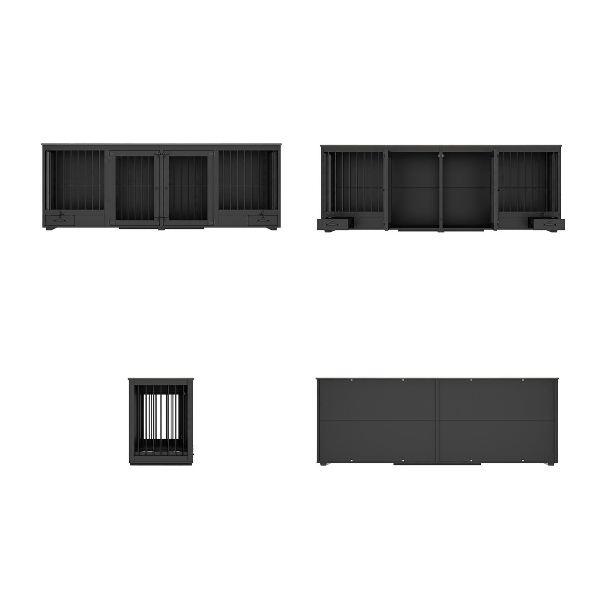❤ 【MODERN STYLE】This modern furniture style dog crate, measuring 86.6x23.6x31.5 inches, serves as more than just a crate for large dogs—it can also be used as a versatile piece of furniture such as a TV stand,display stand, end table, sideboard, etc. With its stylish blend of black colors, it effortlessly complements various home decor styles, adding a touch of simplicity and fashion to any space.