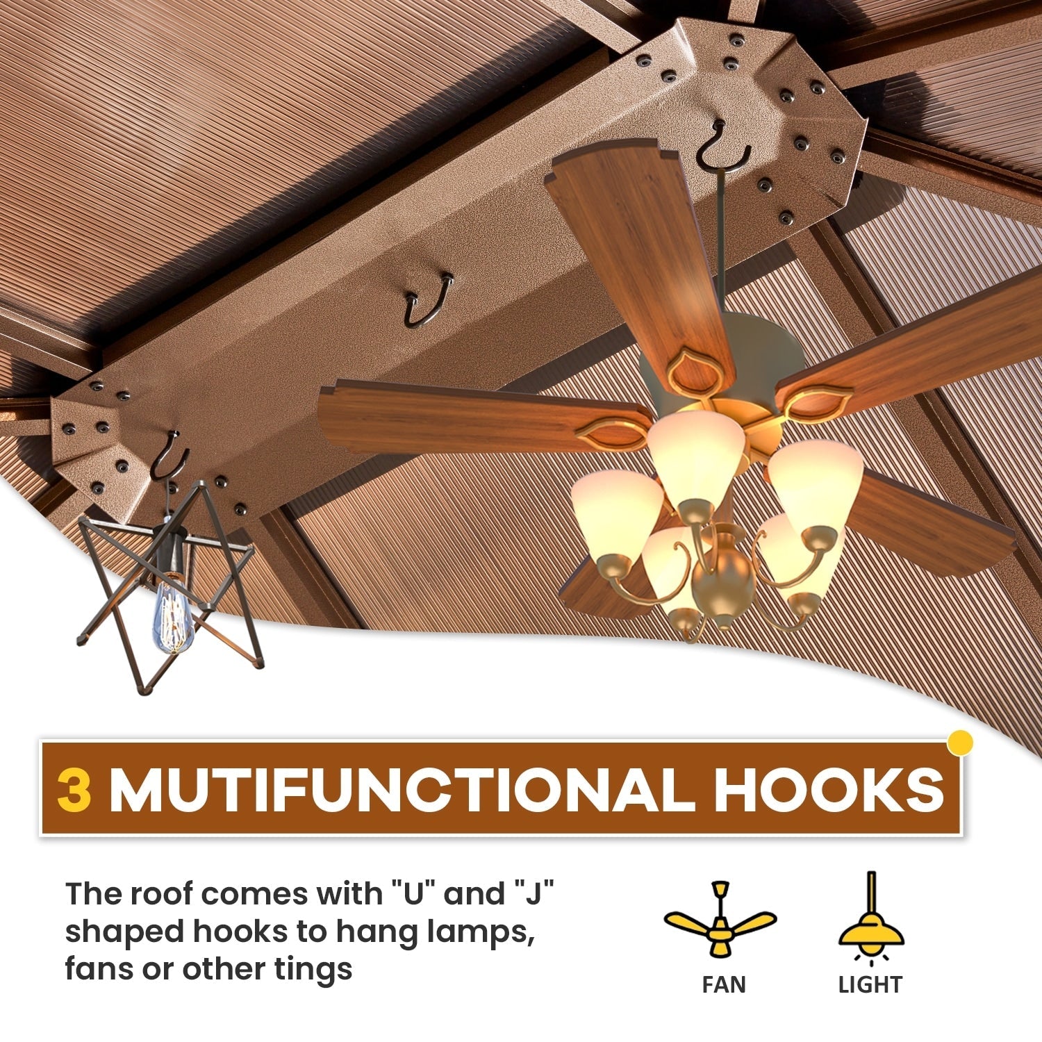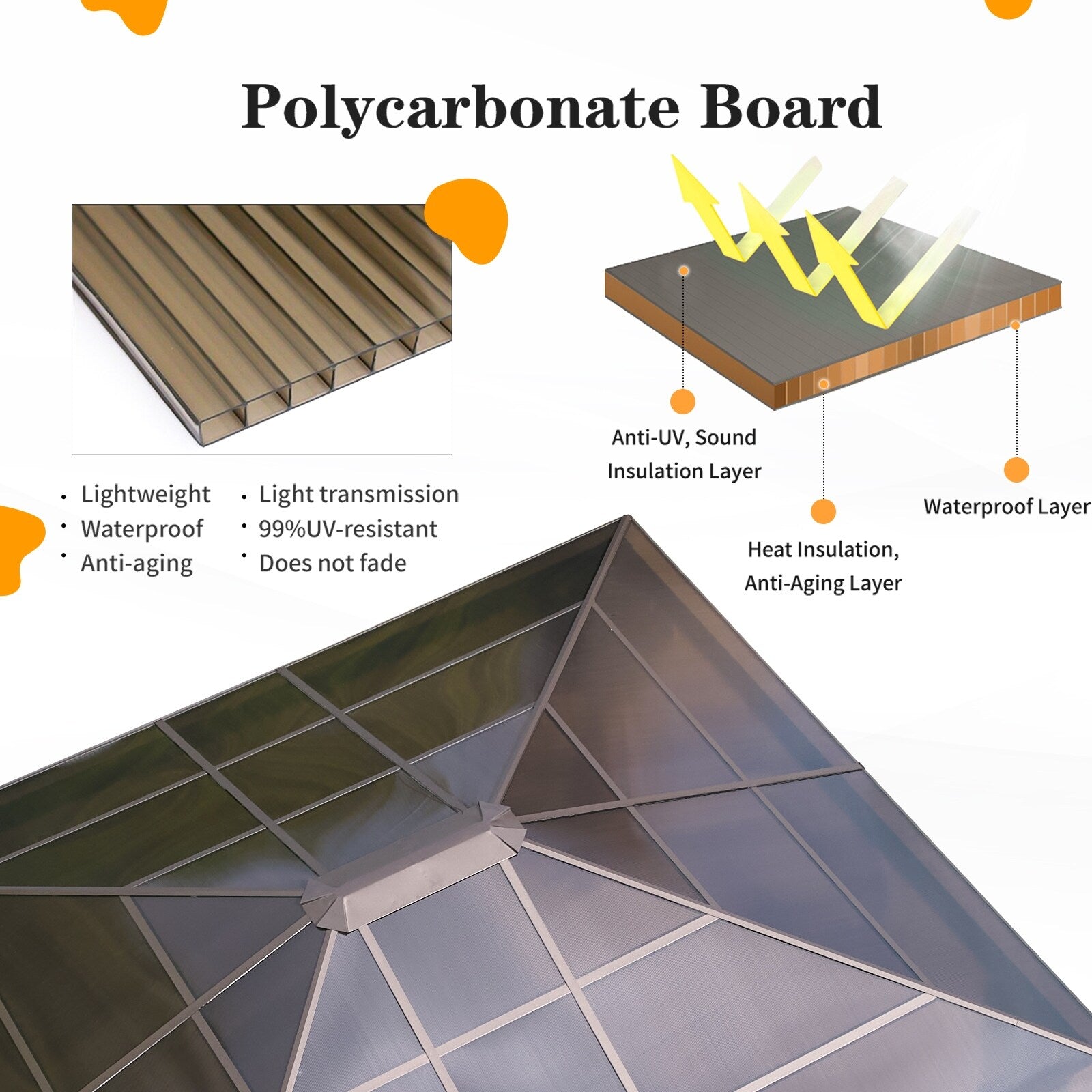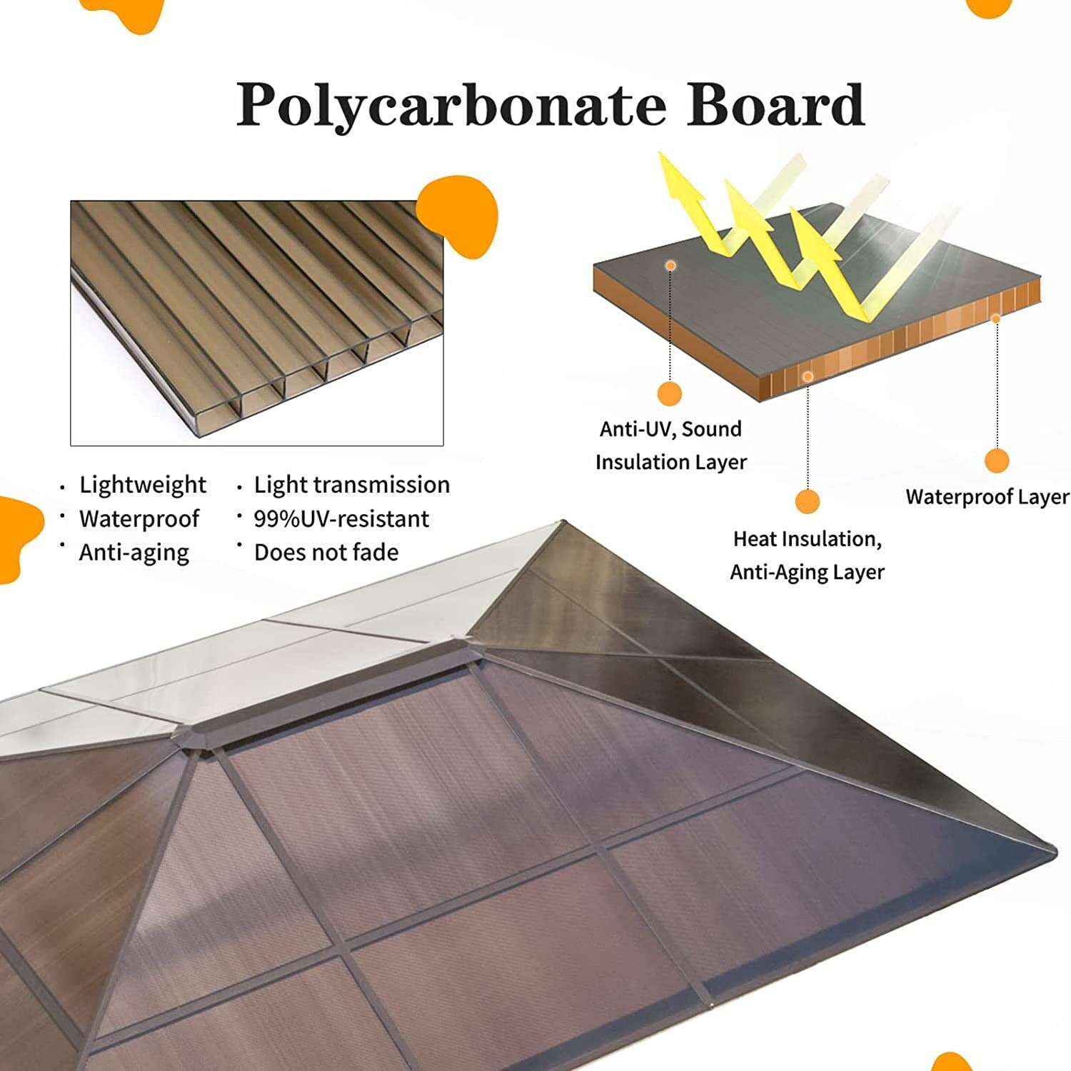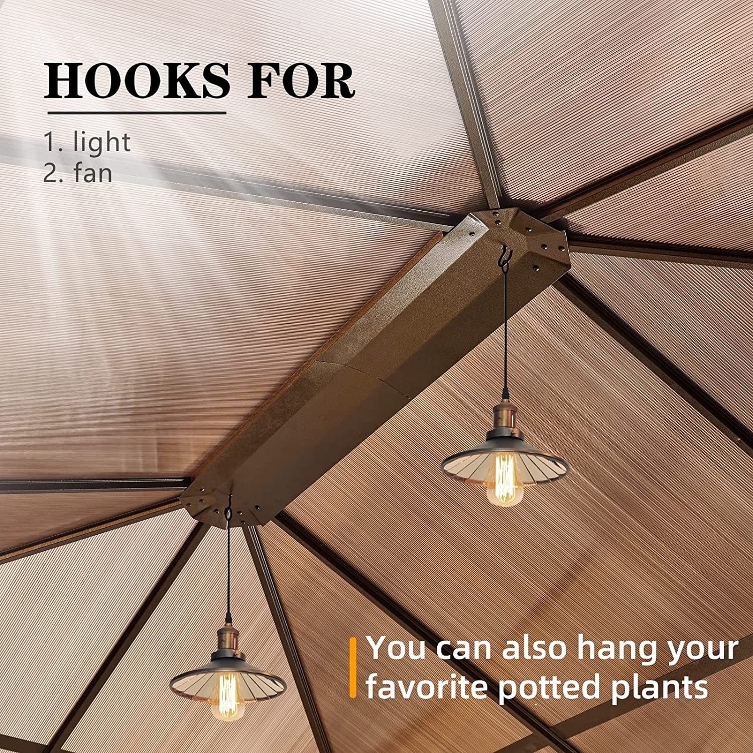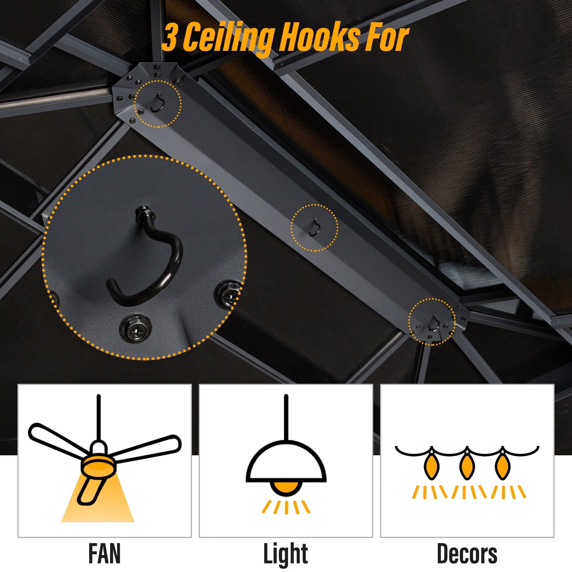 This gazebo features an advanced double-roof design with elevated ventilation spacing, enhancing airflow for a fresher experience. The intelligent ventilation system, combined with hidden side air vents, continuously draws in fresh air while accelerating hot air upward—keeping you cool even during peak summer heat. Enjoy the perfect balance of full shade coverage and natural breezy comfort, whether hosting gatherings or relaxing alone—just like resting under a refreshing tree canopy.