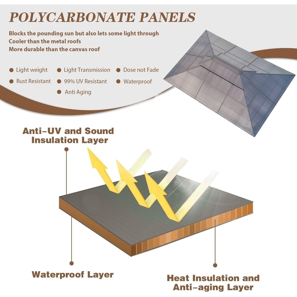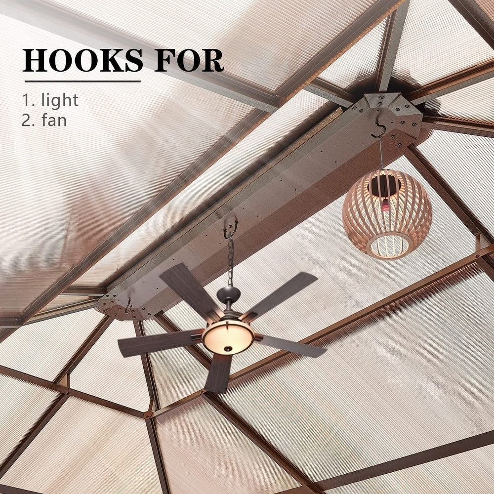 This high-end gazebo effortlessly adapts to various scenarios—from patio BBQ parties and lawn picnics to deck afternoon teas, courtyard grilling, backyard gatherings, or poolside relaxation. Its elegant design provides ideal shade protection, while the open structure not only perfectly accommodates barbecue setups but also fits a 7–9 person dining table and chair set, enhancing your outdoor experience from morning coffee to evening feasts with ultimate comfort and convenience.