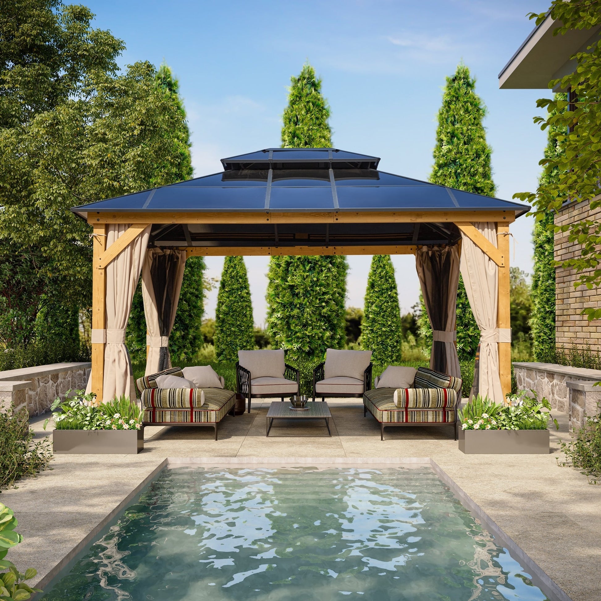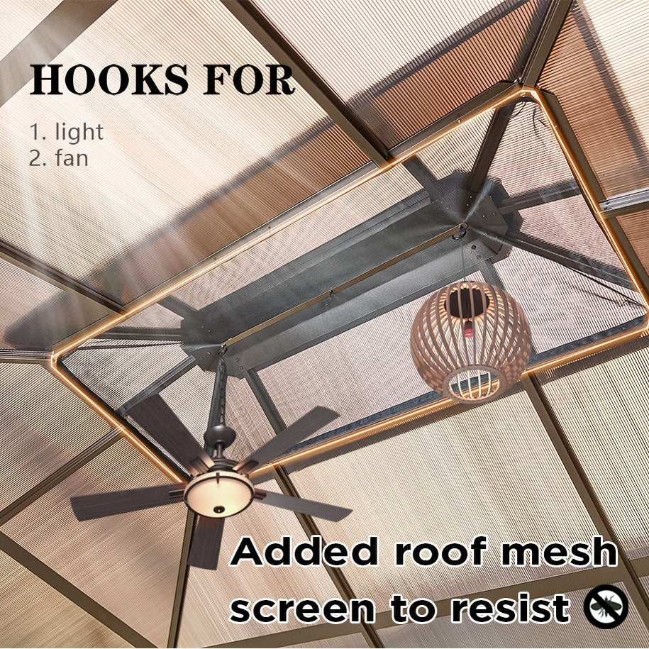 EROMMY Hardtop Gazebo,Outdoor Pergola with Double Roof & Netting & Curtains,Heavy Duty Canopy for Patio, Backyard, Pool party