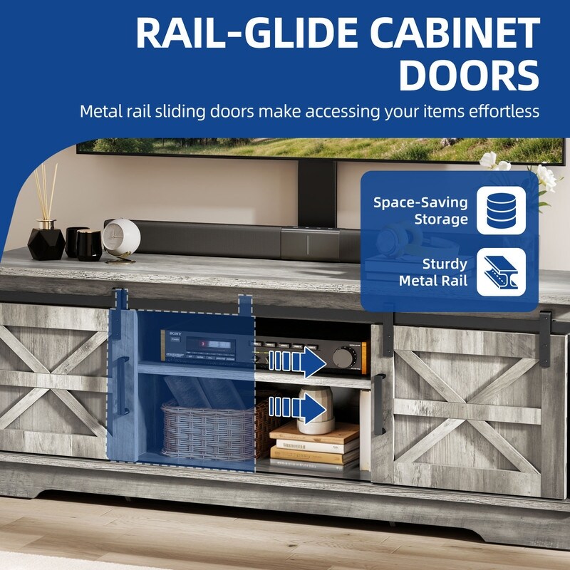 Farmhouse TV Stand for up to 65 TV with Doors and Open Shelves Media Console Power Outlet