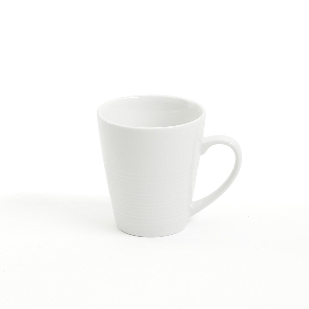 The Gibson Home Embossed Buffet 16 Piece Fine Ceramic Dinnerware Set in White adds a sleek touch to any tabletop. The rim of each piece in this stylish set features a series of concentric circles that provides this classic white dinnerware set with a contemporary look. Crafted from quality ceramic, this collection is durable enough for everyday mealtime.Set: 16 Piece DinnerwareCeramic: CeramicFinish: GlossColor: WhiteDishwasher safeMicrowave safeSet includes:Four dinner plates Four dessert plates Four 15 oz. bowlsFour 12 oz. mugsPer item measurements:Dinner plate: 10.5' diameter, 1' height, 1.55lbs. weight Dessert plate: 7.5' diameter, 0.5' height, 0.55lbs. weight Bowl: 7' diameter, 2' height, 15oz. capacity, 0.75lbs. weightMug: 4' height, 3.5' length, 2.5' width, 3' handle, 12oz. capacity, 0.85lbs. weight