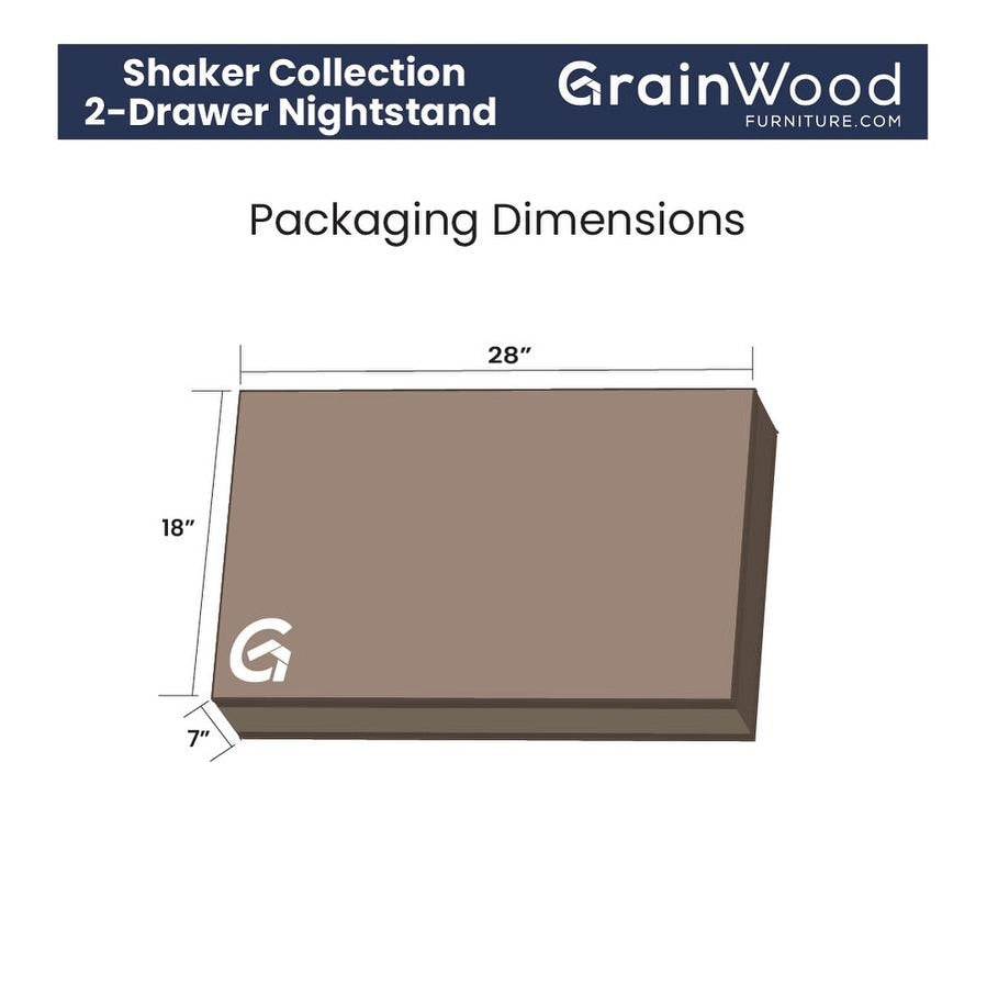 Grain Wood Furniture Shaker 2-drawer Solid Wood Nightstand
