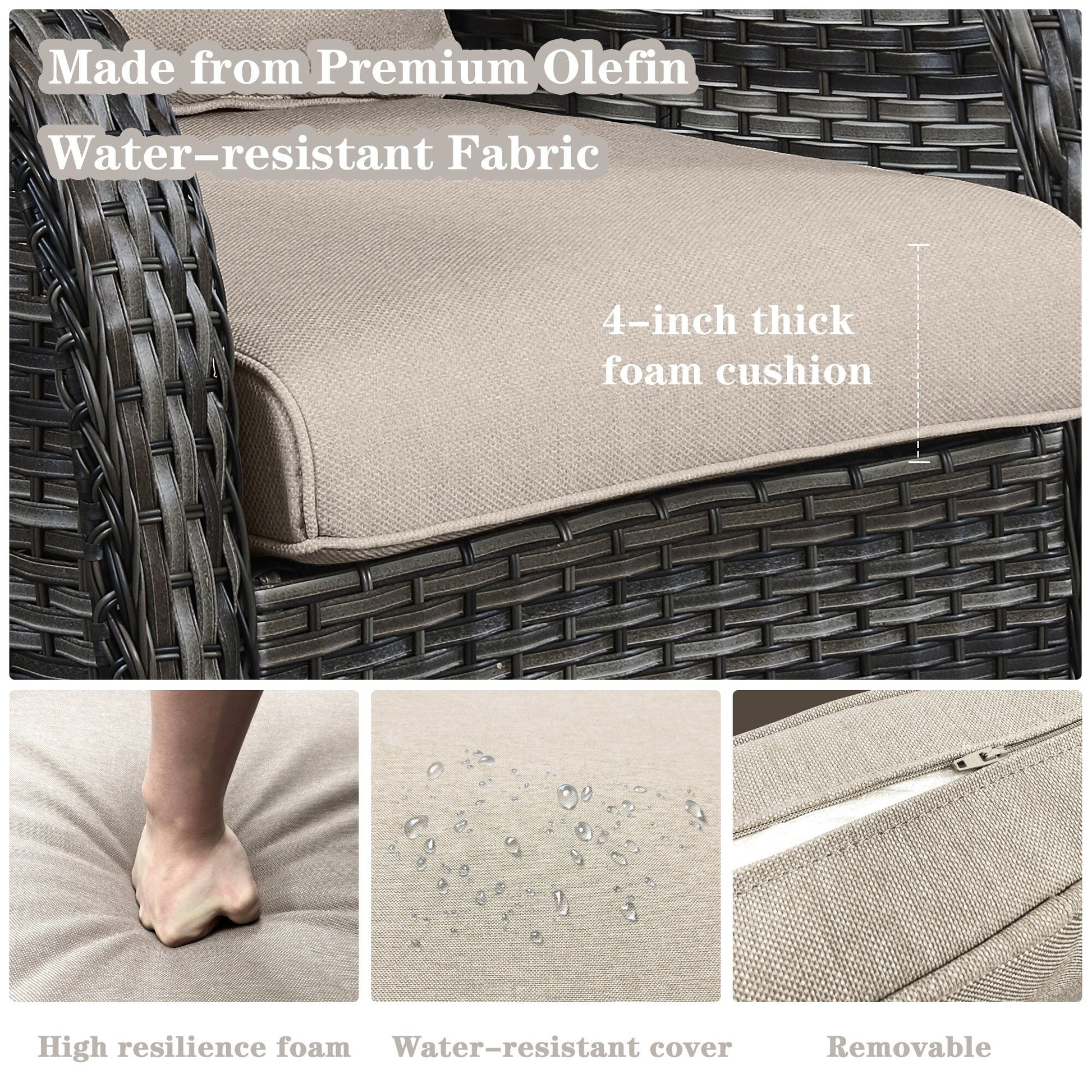 - Plush, Deep Seating: This outdoor lounge chairs feature deep and wide seats with 4-inch thick sponge-padded cushions create the ultimate patio seating experience.