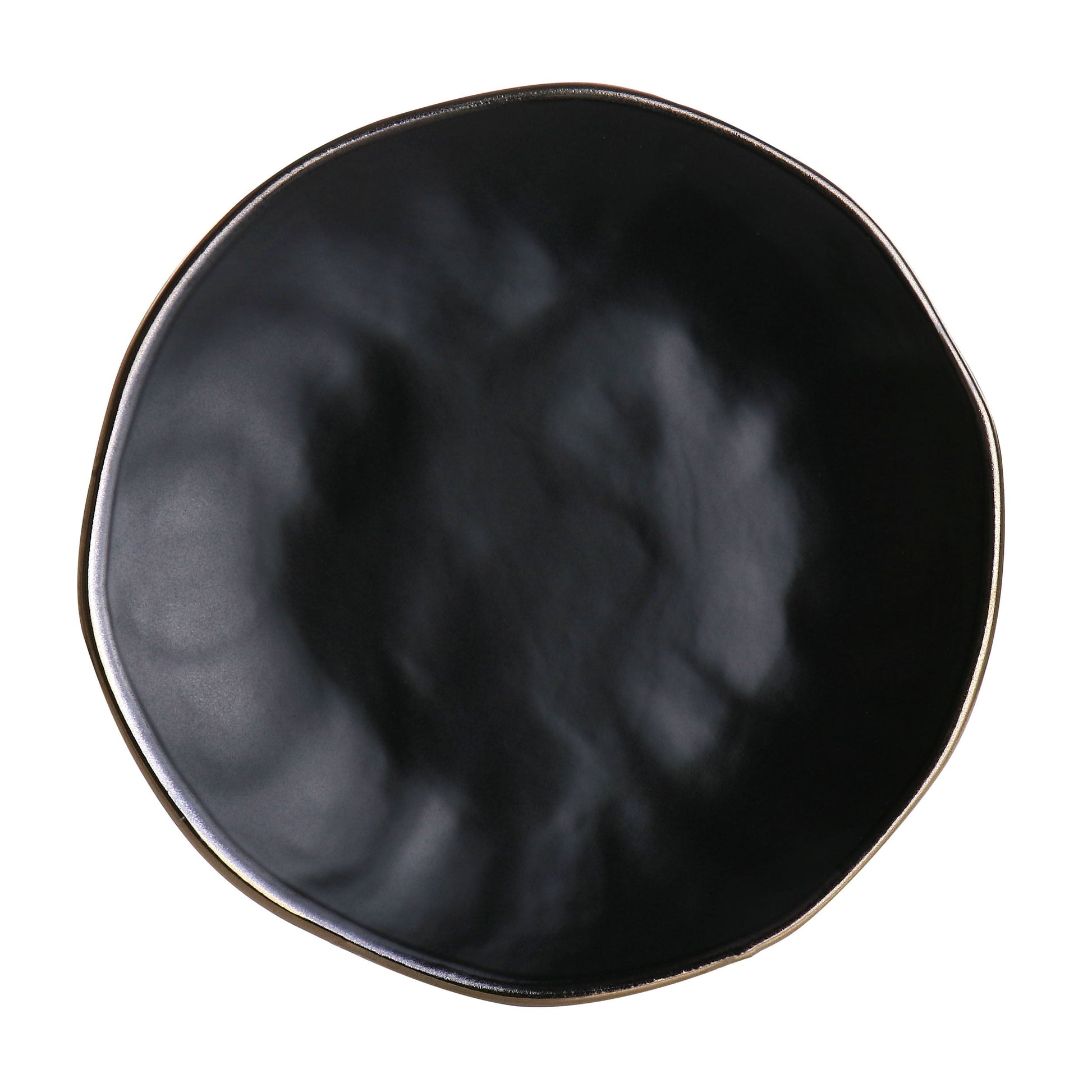 Add a beautiful accent to your dining table with this 16 Piece Round Stoneware Dinnerware Set in sophisticated assortment of Matte Colors with Gold Rim Trim. Each dish is creatively crafted with a unique flat base, raised rim and trimmed in gold. Beautifully finished off with a thin, elegant gold rim this set is a statement piece. Constructed of Stoneware, this set is ideal for special occasion gatherings and sturdy for every day use. Each plate is microwave safe for quick reheating and dishwasher safe for easy cleaning.