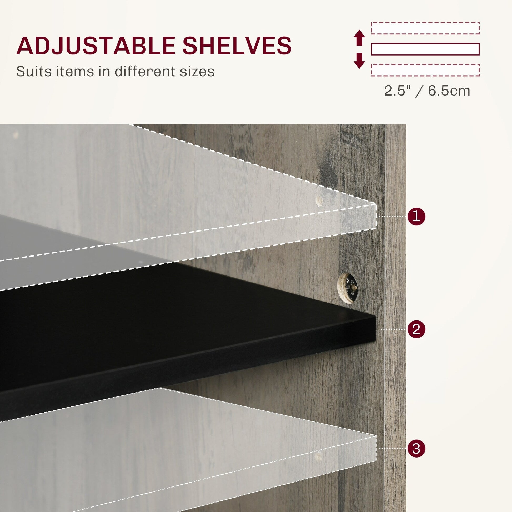 Need a little extra storage in your home to organize clutter? This HOMCOM storage sideboard can provide what you need in any room of your home. This sideboard has crossbuck doors and a distressed wood-grain making for a great accent piece to your farmhouse décor. The top shelf, adjustable shelf storage cabinet, and drawer offer storage for dishes, plastic containers, and glasses. Elevate your dining, living, or bedroom with this sideboard cabinet from HOMCOM.