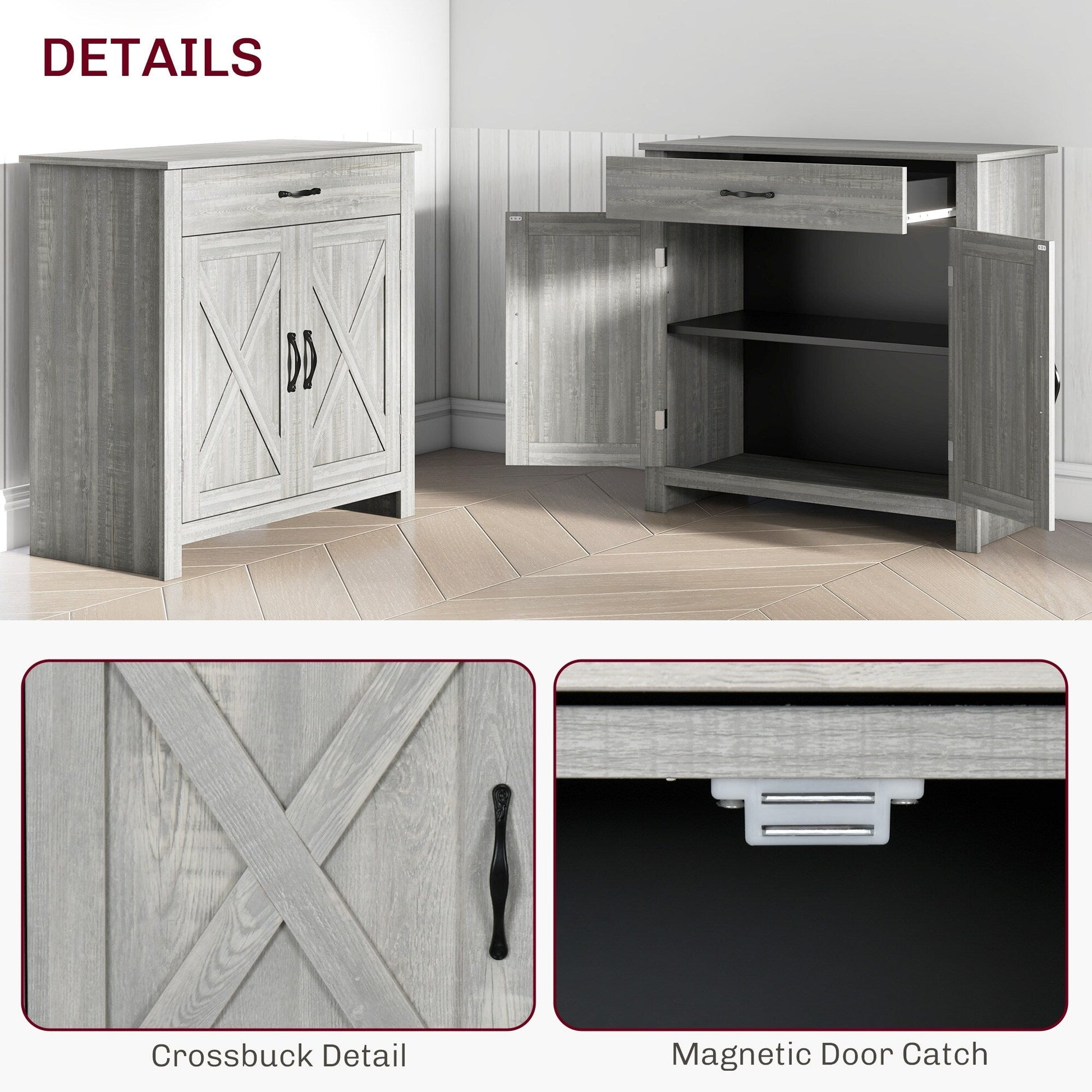 HOMCOM 32 Farmhouse Barn Door Style Sideboard Cabinet,Buffet Storage Cabinet Coffee Bar for Living Room or Entryway