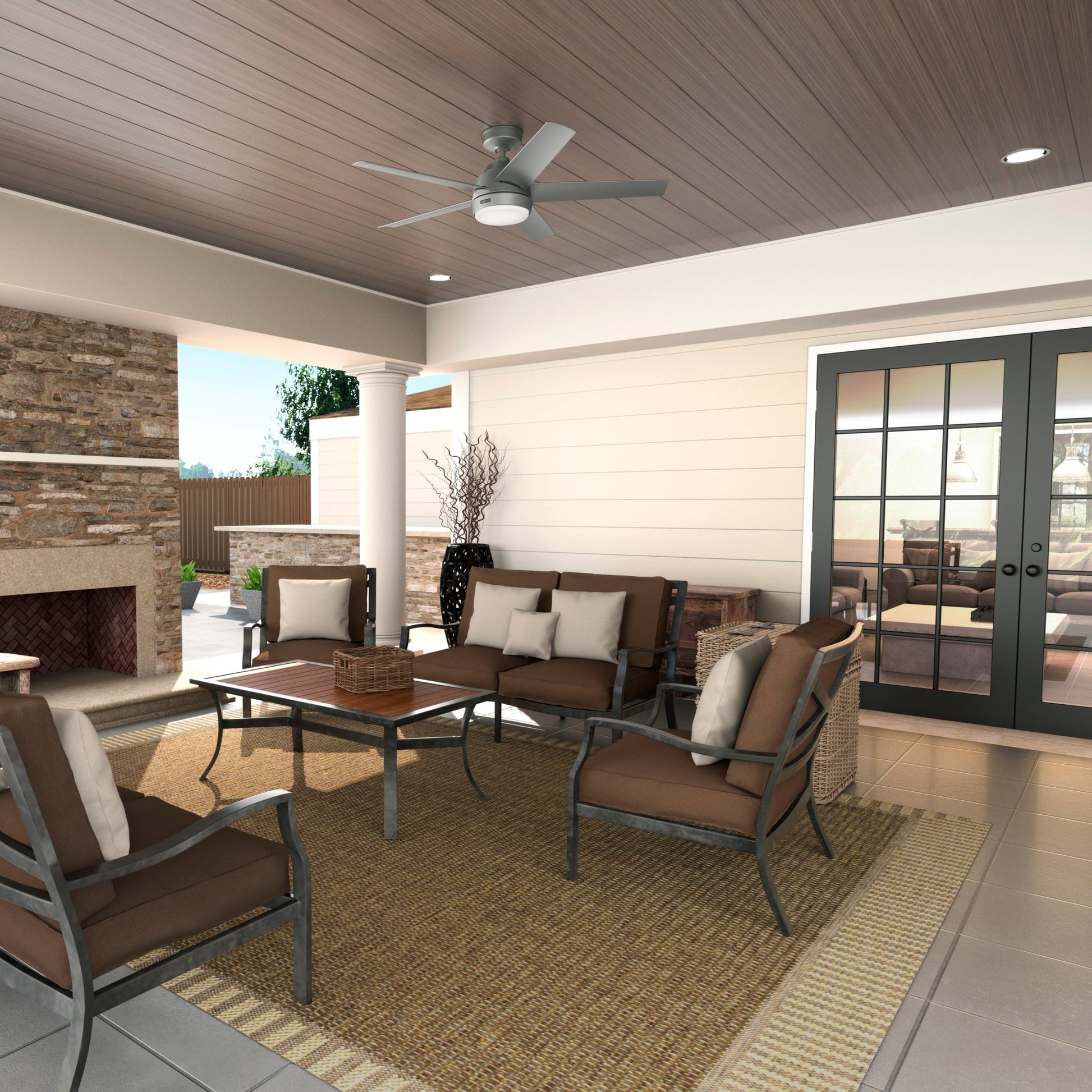 Hunter 52 Skyflow Outdoor Ceiling Fan w/ LED Light Kit, Wall Control - Coastal Modern Contemporary - WeatherMax - WET-RATED!