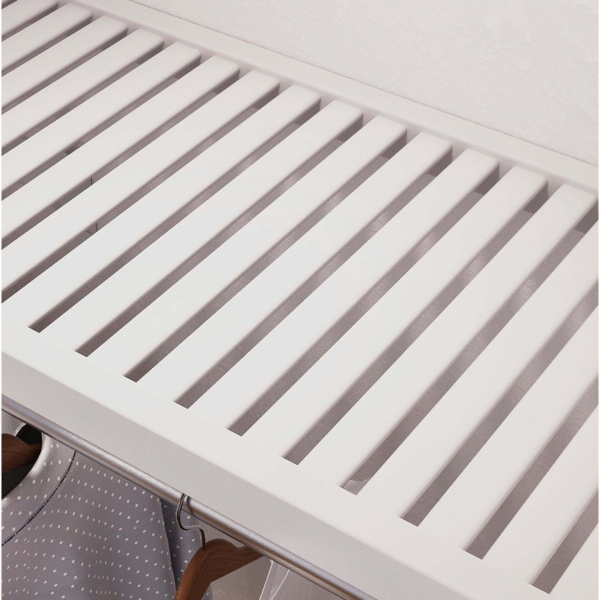 Behold the transformative power that genuine Solid Wood can do for your space with the John Louis Home 12in. deep White Closet Organizer. Designed with attention and care for exceptional quality, this adaptable system caters to both reach-in and walk-in closets. Effortlessly enhance your space with this smart yet stylish organizer to create a stress-free environment you'll love.