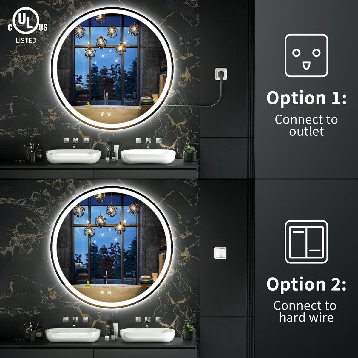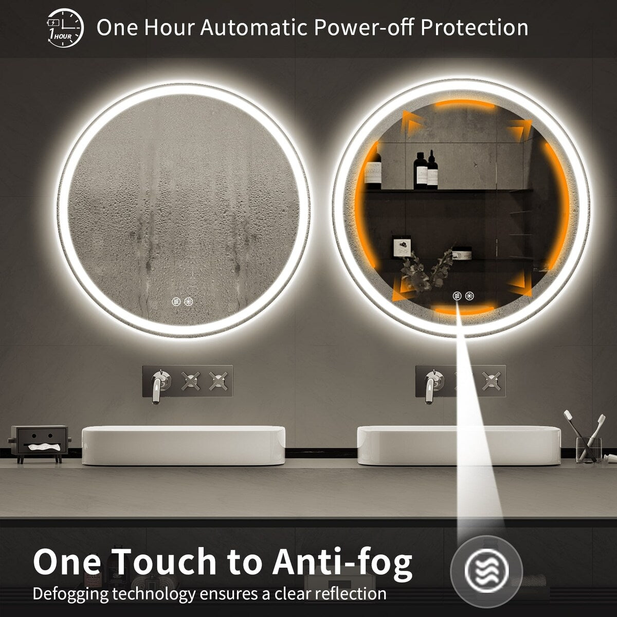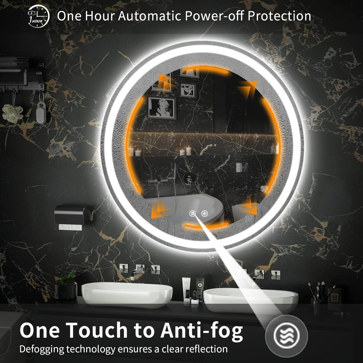 - Long Lifespan- Made with tempered glass and 50,000 hours of LED (will last for 45 years), the circle-led mirror will be with you longer.