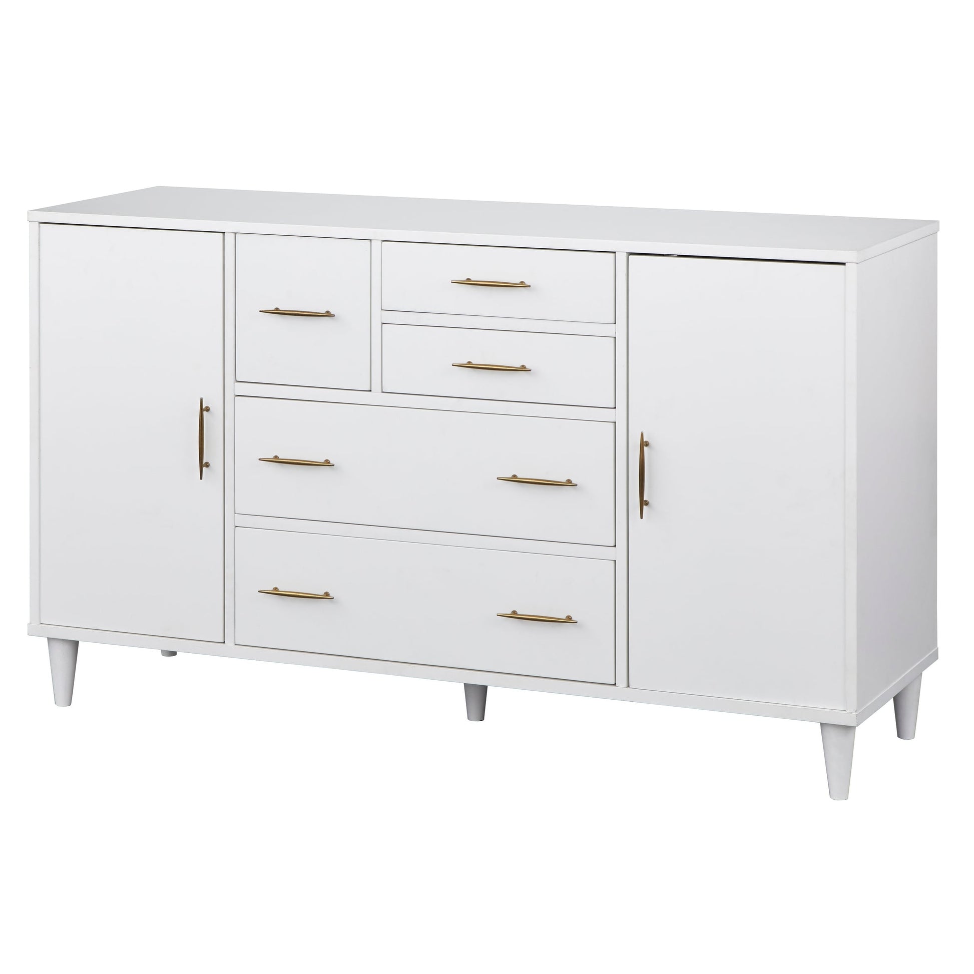 Boasting a charming mid-century modern design that marries style and storage, this lovely buffet is ready to help you in all your dining room needs. A collection of drawers and cabinets in varied sizes offer versatile organization options for flatware, linens, serving bowels, and sundry. Ventilation cut-outs can also serve as cord management for electronics.