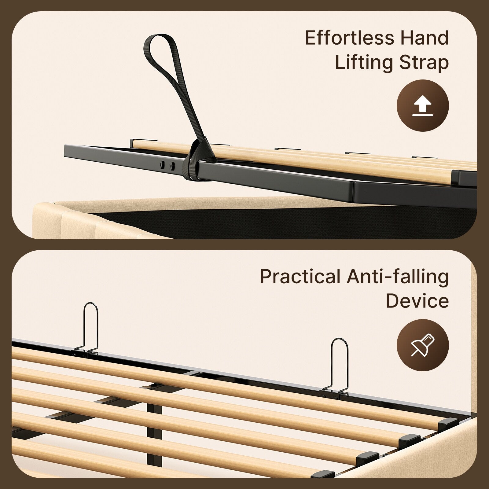 Lift Up Storage Bed Frame, Upholstered Platform Bed Frame with Hydraulic Storage System and Headboard