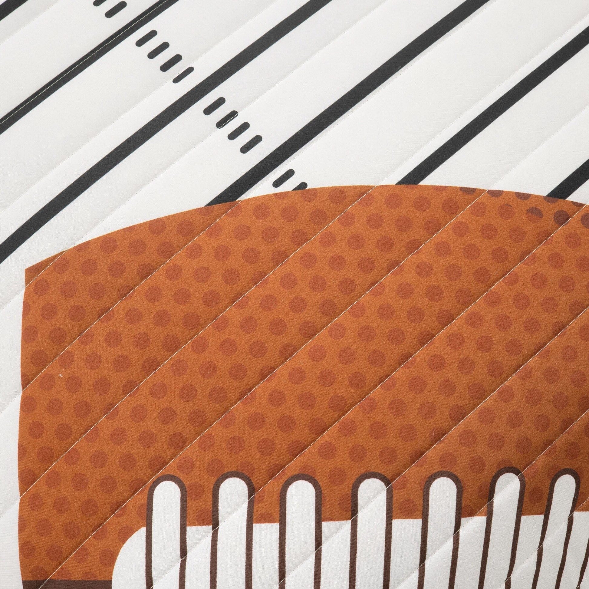 Touchdown! Give your child's bedroom an update with this fun and graphic football quilt set. This bedding set is perfect for those who play the game or simply love the game. With its striped reversible design and decorative pillows, there's no better way to show off your love for your favorite sport. This set comes with a quilt, one sham, and two decorative pillows. The 100% polyfill in this bedding set provides lightweight coverage for all season comfort. Please refer to label for full care instructions.