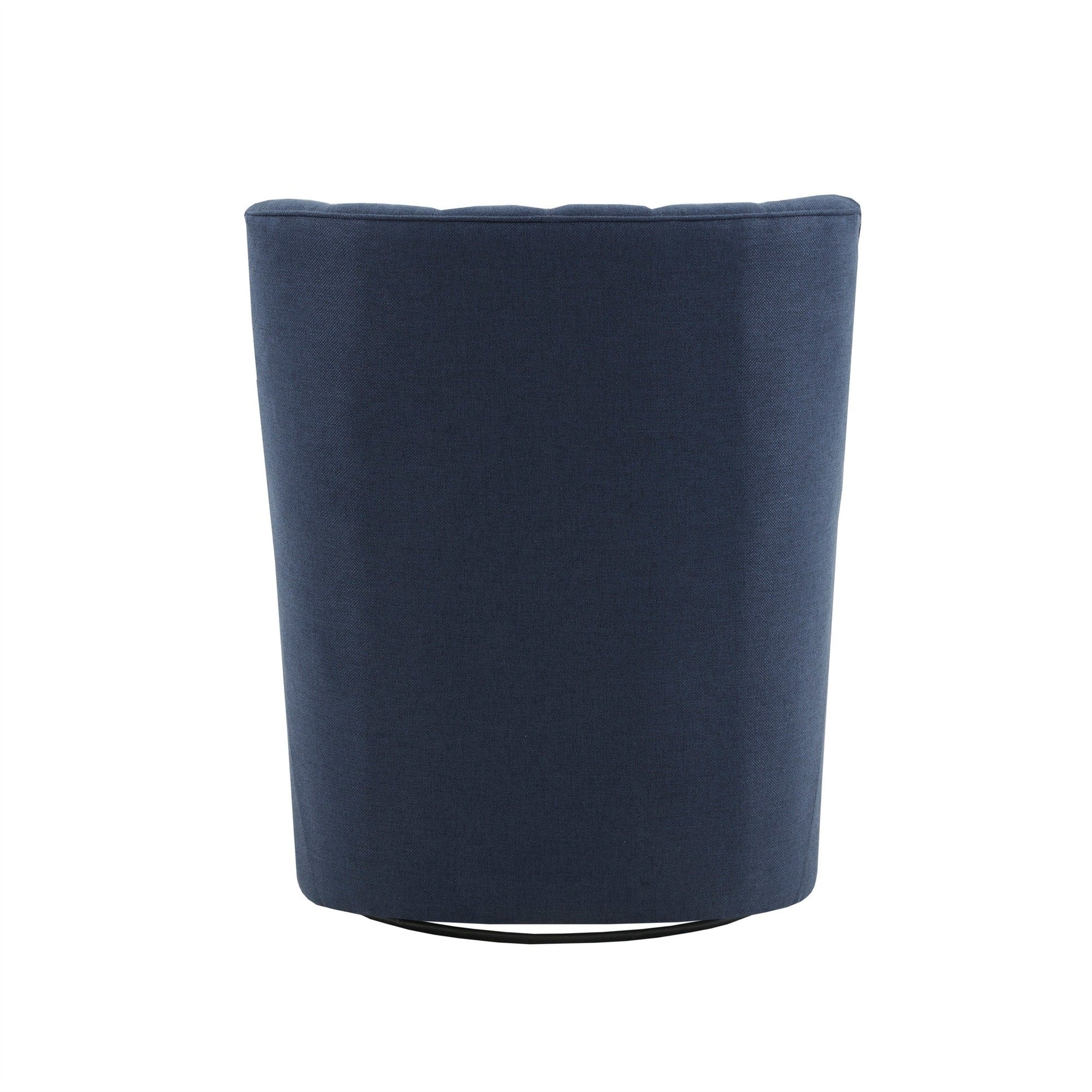 Relax in the comfort and style of the Madison Park Rae swivel glider chair. This swivel chair is upholstered in a soft fabric with a hand-tufted back to create a traditional look. The swivel glide base allows the chair to rotate 360 degrees, while also being able to rock smoothly back and forth. With a comfy removable seat cushion, this swivel glider chair adds a classic comfortable touch to your living room.?