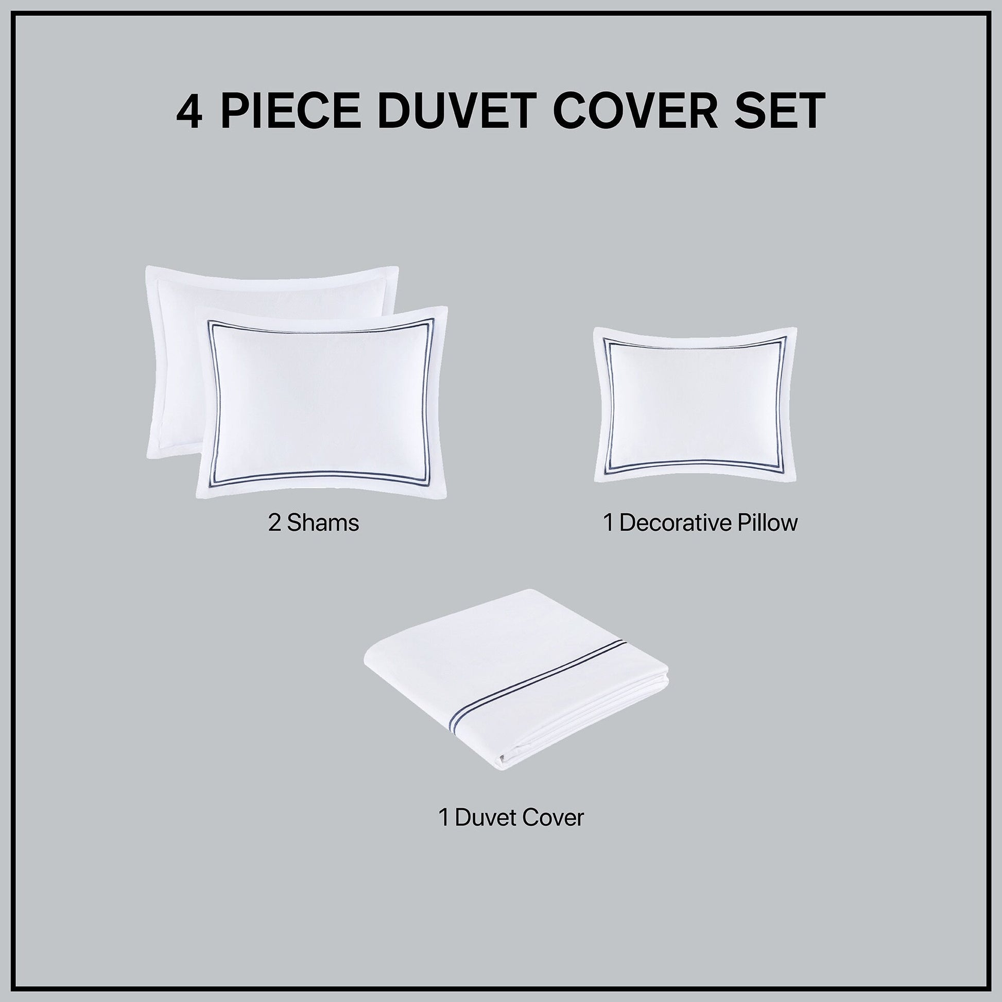 - 4 piece duvet cover Set - 1 duvet cover, 2 shams and 1 matching decorative pillow