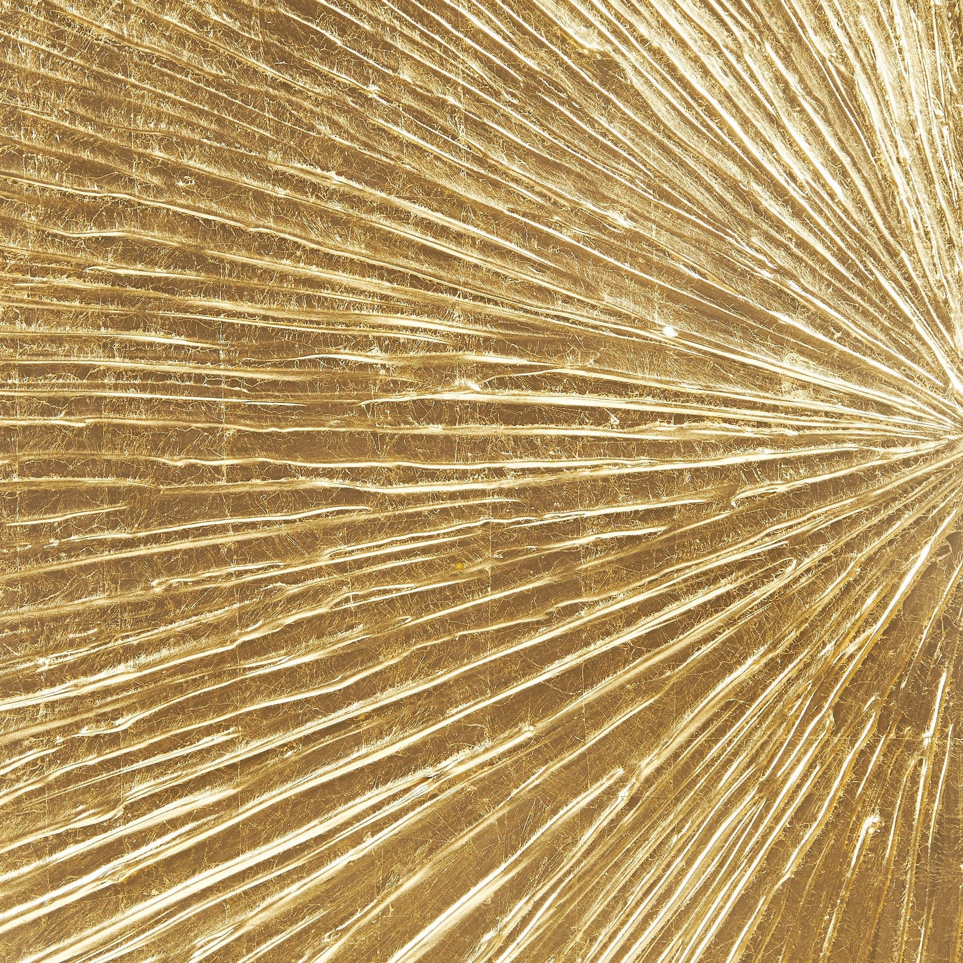 Illuminate your space with the captivating elegance of the Sunburst Hand Painted Triptych Wall Art Set. This striking 3-piece set showcases a modern abstract sunburst design, enhanced by a gold metallic finish that adds warmth and sophistication to any room. Crafted from dimensional resin with a heavy texture detail, each panel brings a gallery-worthy presence to your décor. Each piece is thoughtfully designed for vertical hanging with D-ring hangers, making installation effortless. Whether placed in a living room, dining area, or entryway, the shimmering gold tones and dynamic design create an eye-catching focal point.Transform your home into a space of refined luxury with the Sunburst Triptych Wall Art Set — a stunning reflection of modern artistry.