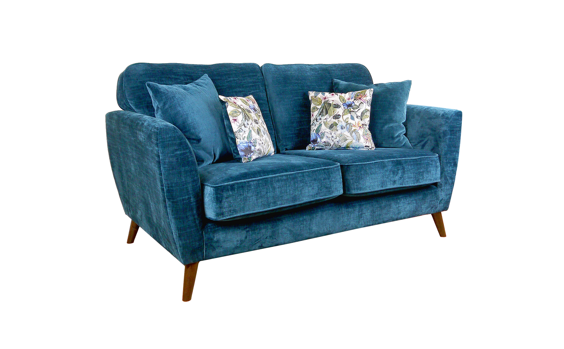 Notre gamme de canapés compacts contemporains la plus vendue, disponible en deux tailles et avec un fauteuil assorti. Nous proposons également un canapé d'angle compact, disponible en version gauche ou droite, ou, si vous préférez une chaise longue avec repose-pieds intégré, en version gauche ou droite. Un repose-pieds assorti est disponible sur commande. Disponible en cinq luxueux velours flammé aux couleurs de la bande de roulement. Livré avec des coussins d'appoint garnis de plumes, deux grands unis et deux petits à motifs unis, pour chaque canapé et un pour le fauteuil. Disponible avec des pieds en chêne clair ou foncé.