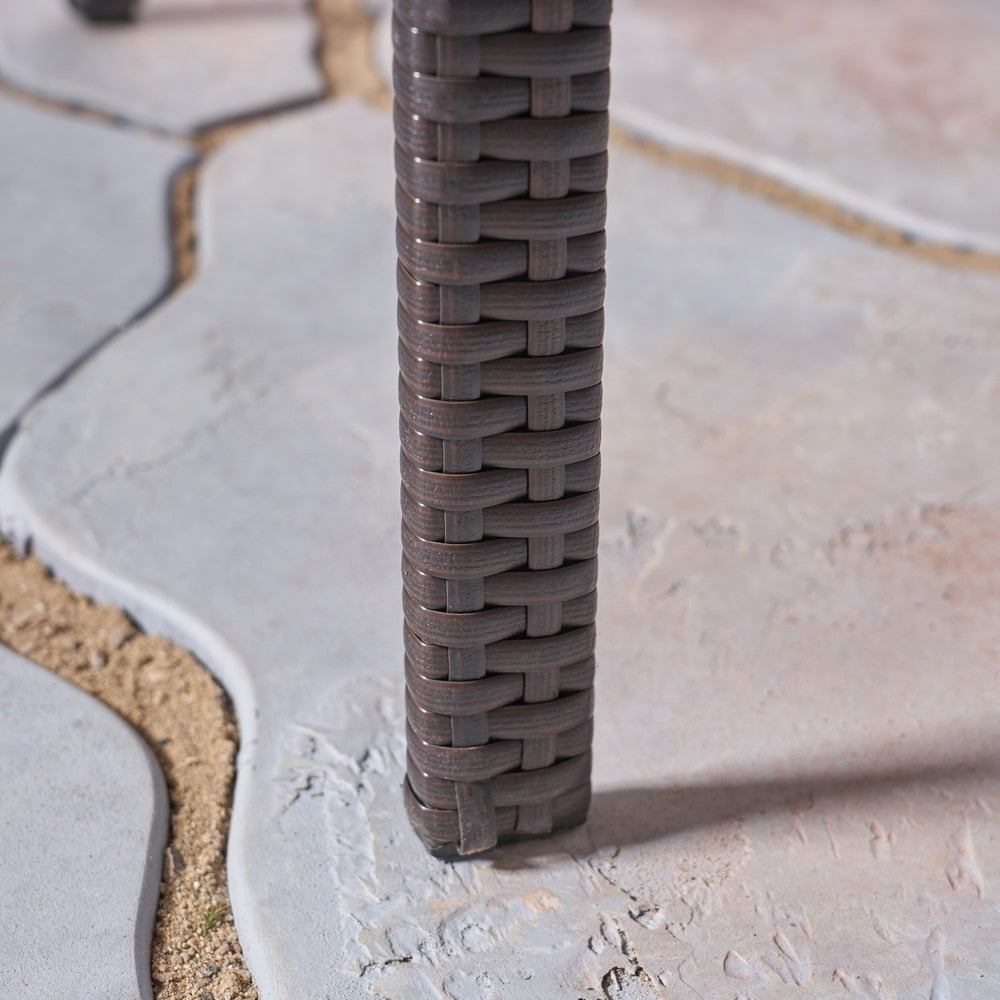 The beautiful blend of wood and wicker comes to life with this dining set. Complete with six wicker dining chairs and one wooden table, you can enjoy eating in your backyard whenever you want. The wooden table is treated to withstand even the harshest of seasons, ensuring your set looks great all year long. This set also comes with the added benefit of cushions for your seats, giving you the perfect color contrast, as well as the comfort that everyone wants when sitting outside for extended periods of time. The rectangular table ensures that there is enough space for both food and people, meaning no one leaves the table hungry.