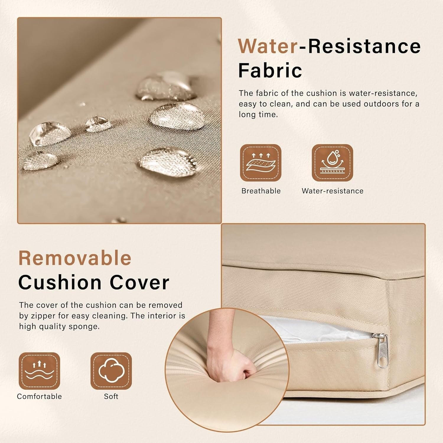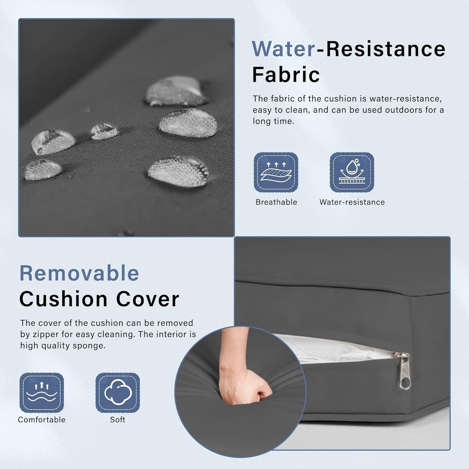- Removable polyester cushion covers are weather-resistant with sponge cushion padding