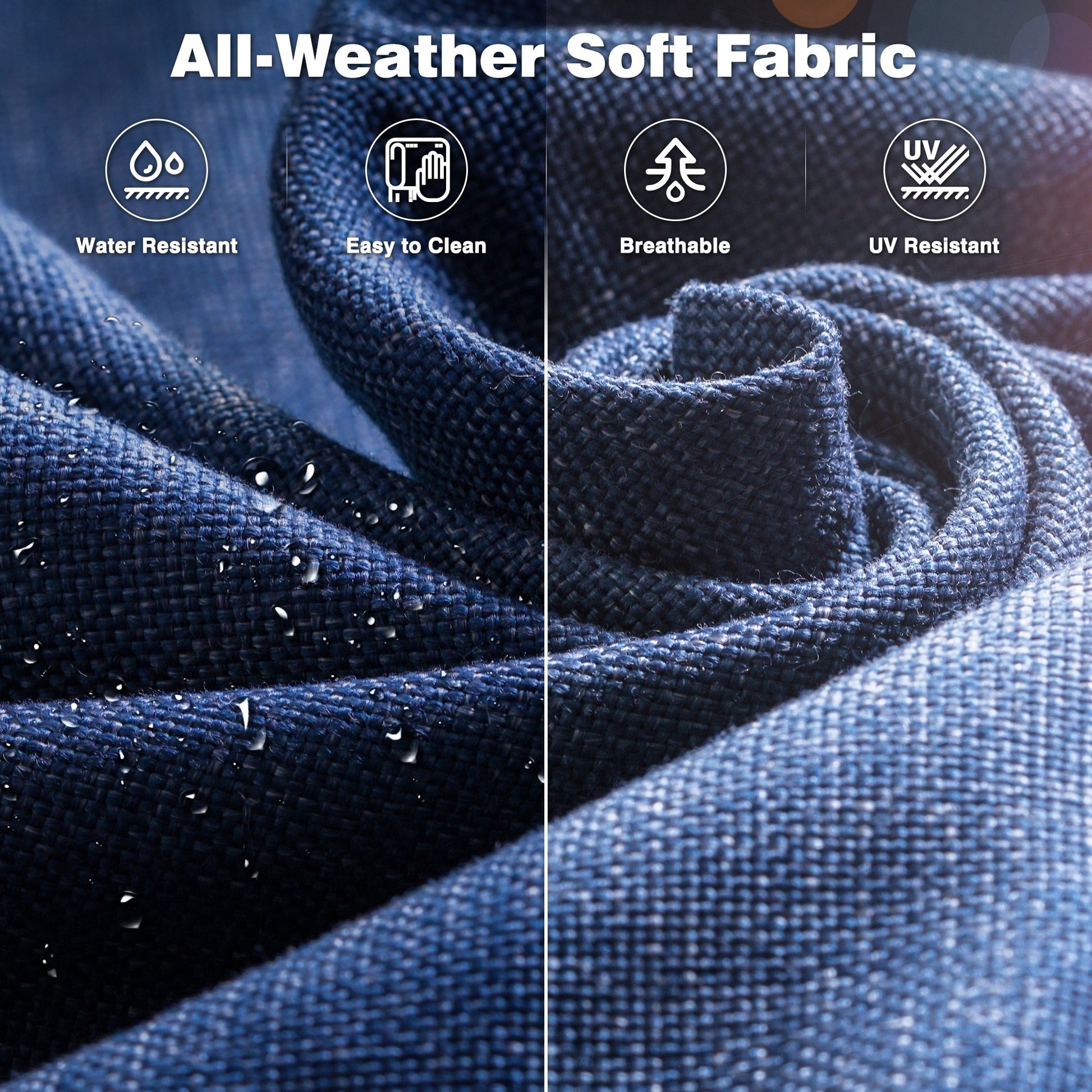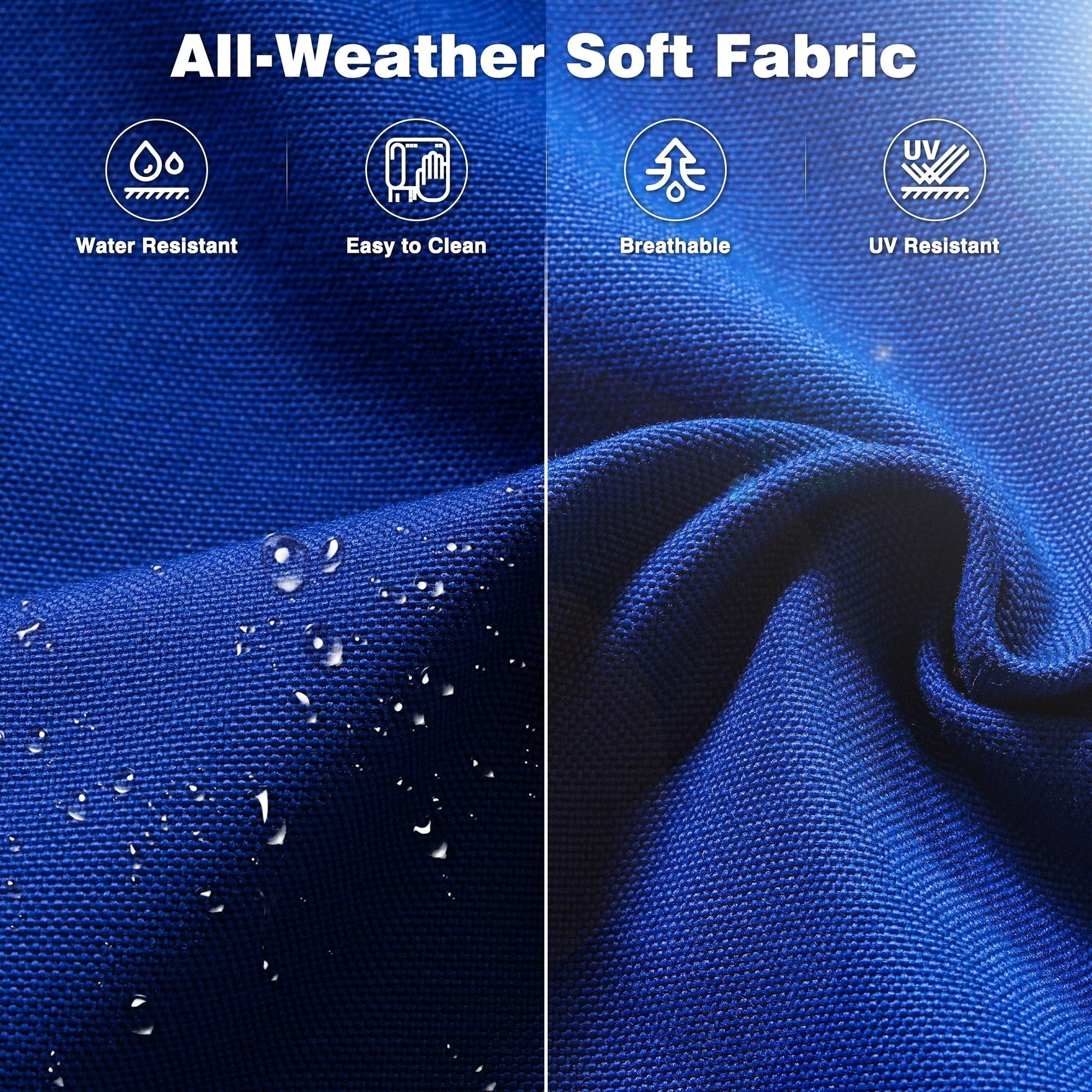 - Modern and inviting design – Complements any outdoor décor with its vibrant blue cushions