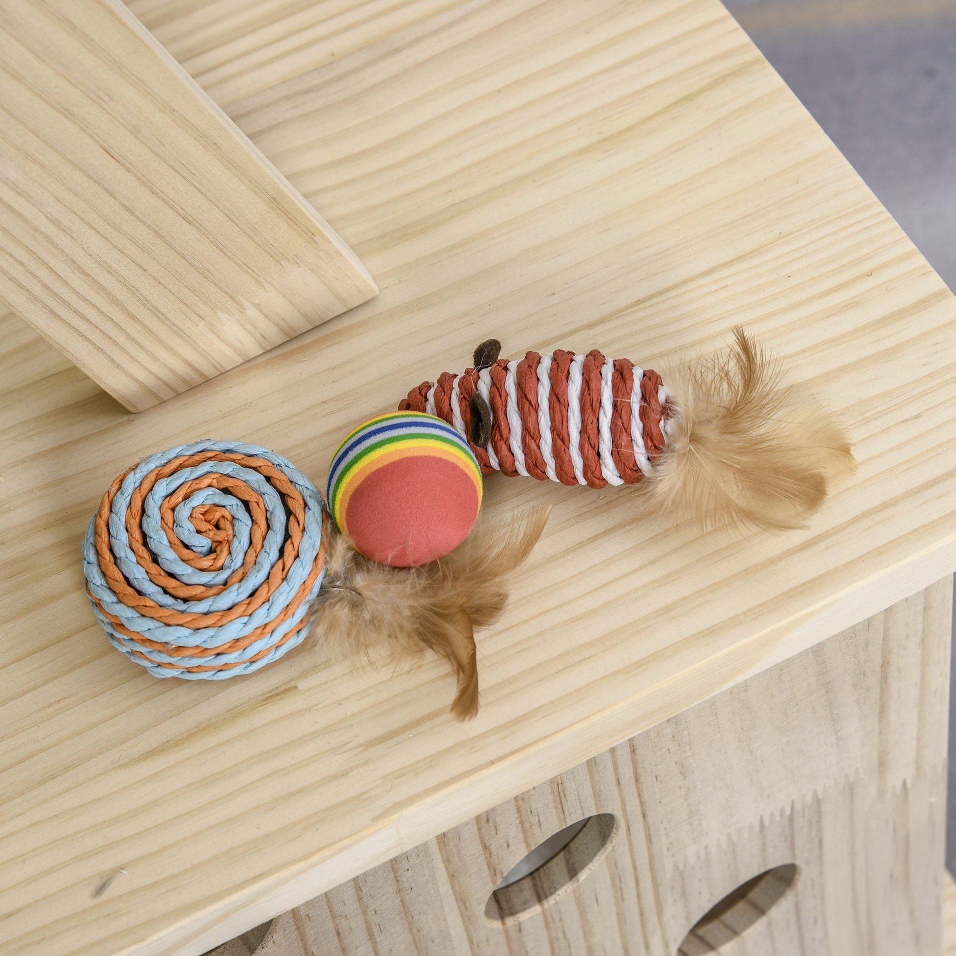 Keep your cats endlessly entertained with the PawHut cat tree! This special pet play area of this cat condo features a ton of super fun and interesting activities for your favorite little ones. With 5 platforms to sleep and bask on, this multifunctional cat tower is the perfect solution for homes with more than one frisky feline! The cat scratchers on this cat activity tower benefit both pet and owners by providing someplace to relieve your cat's desire to claw and climb, saving your carpets and household furniture from damage. Rest, play, exercise, your cats can spend all day on it, a comfortable unit for your furry friends.