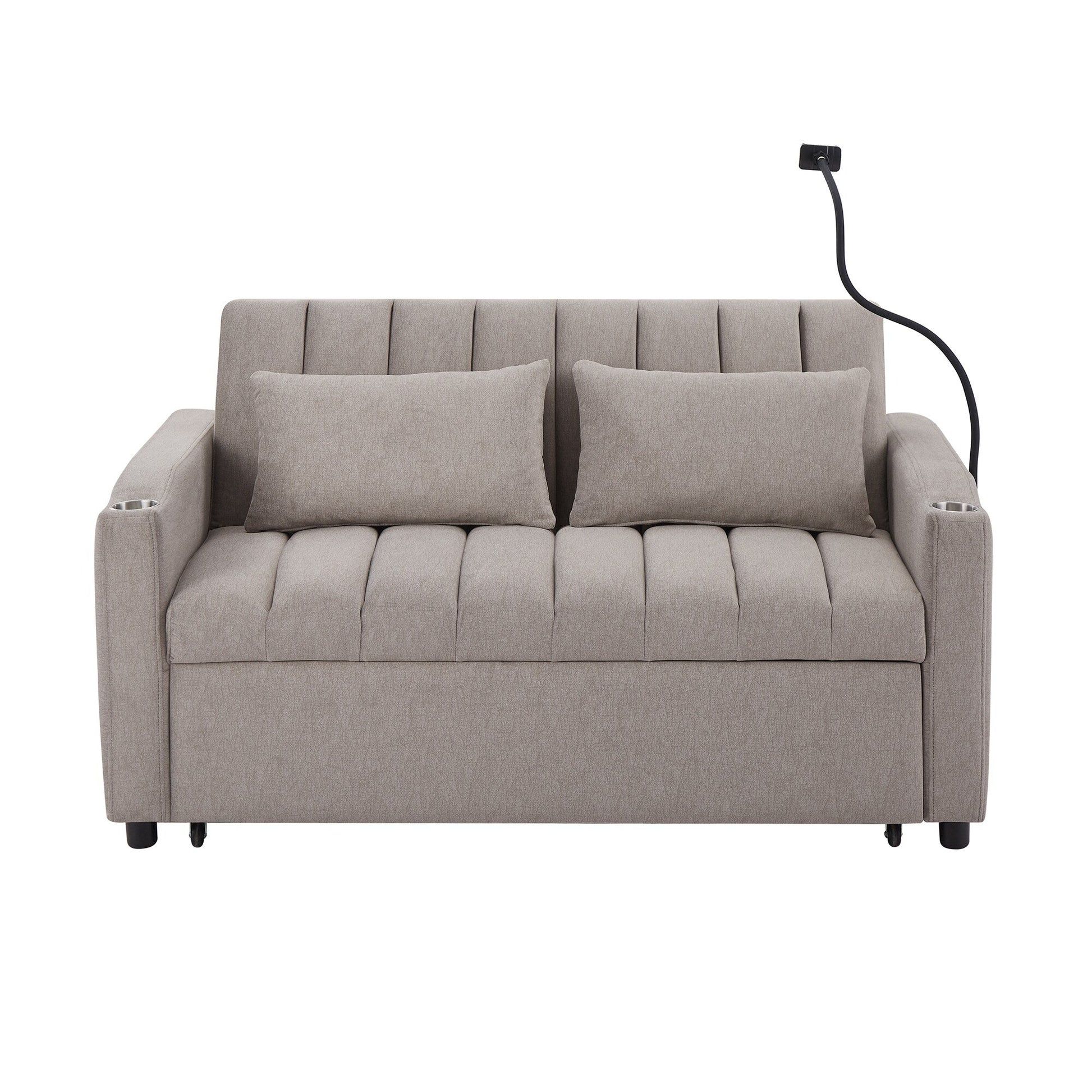 Roomfitters Convertible Loveseat Sofa Bed with USB Ports, Side Pockets, Cup Holders, and Swivel Phone Holder for Living Room