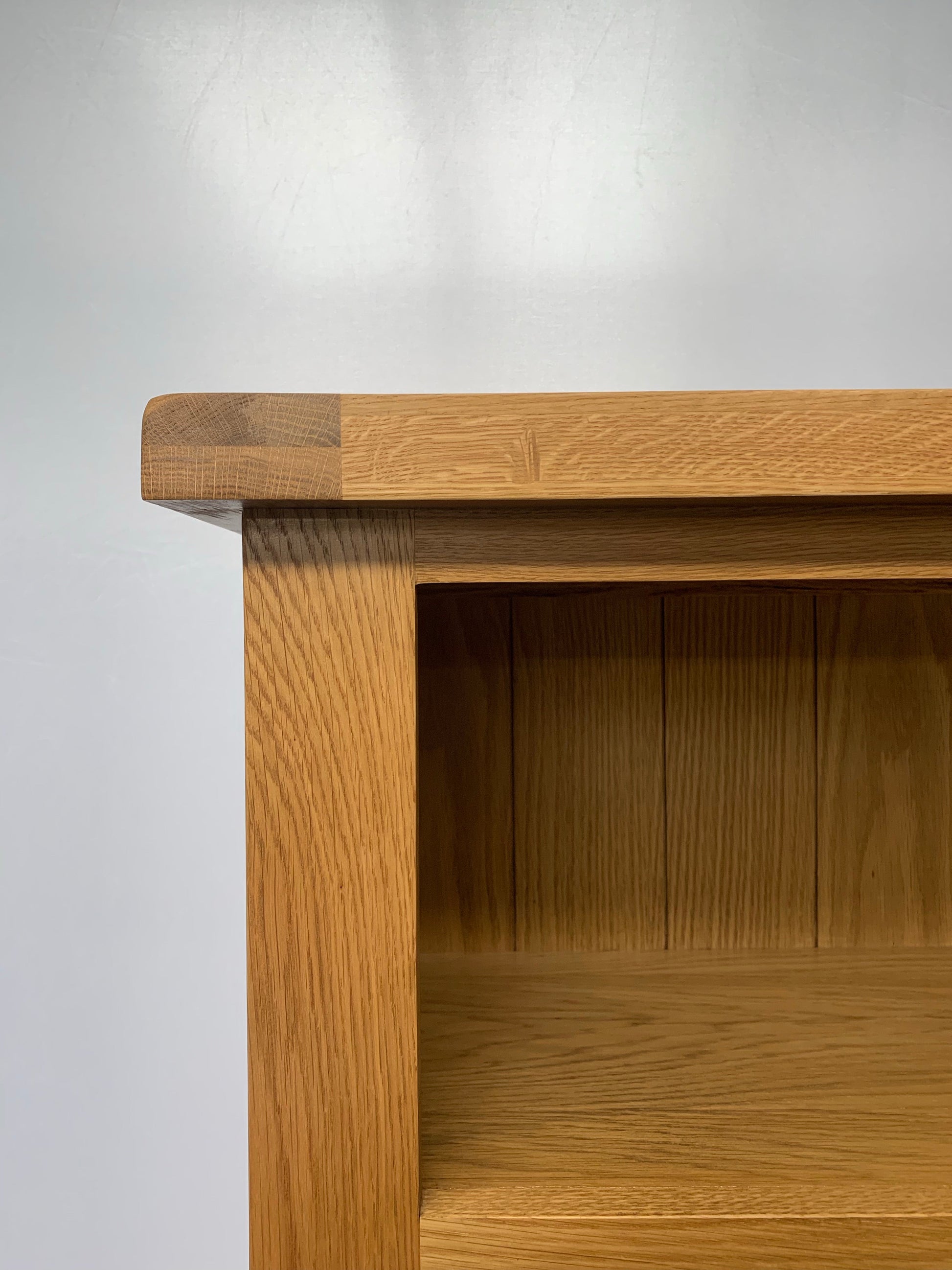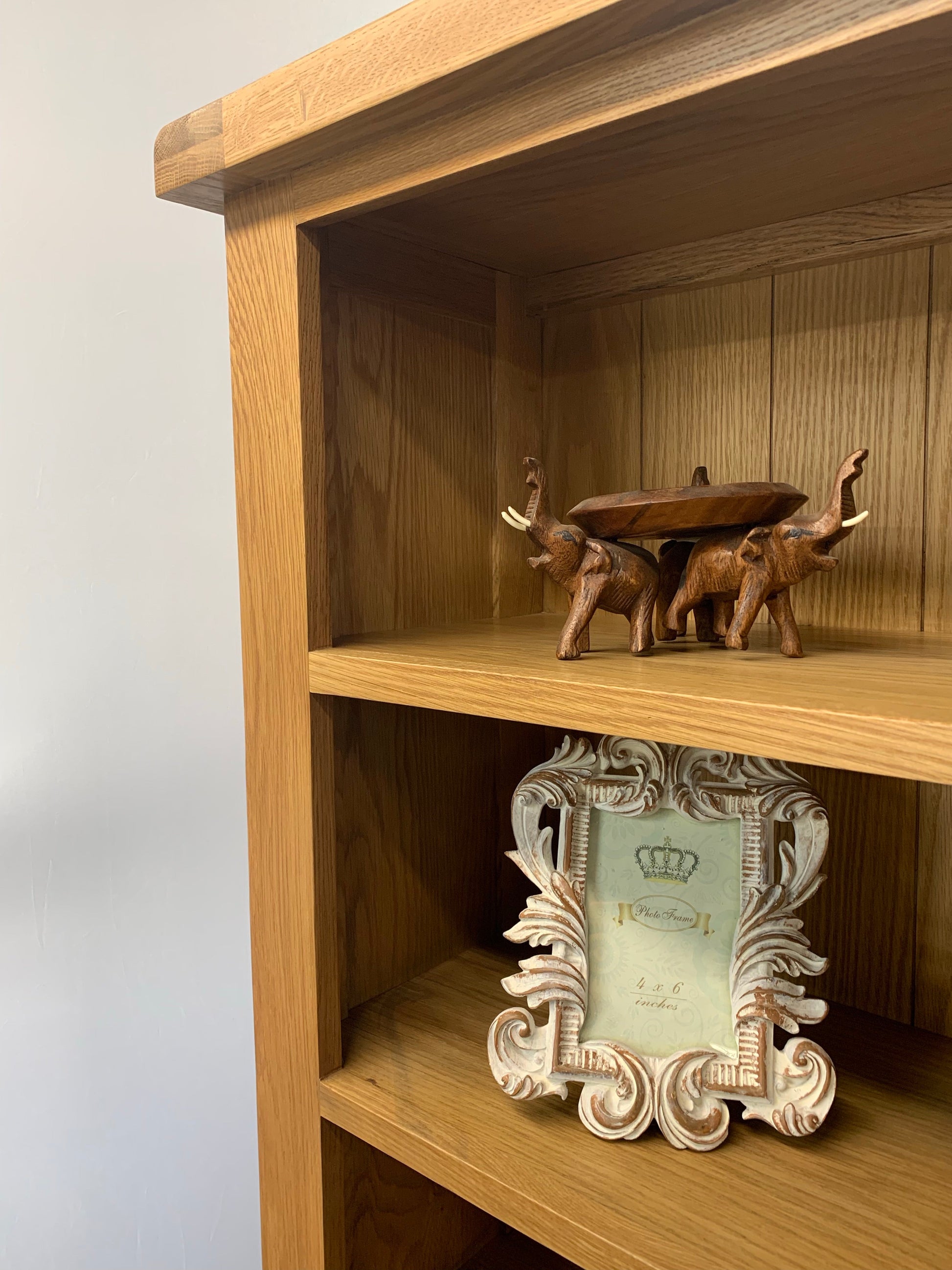Cette bibliothèque robuste à étagères fixes sera un atout précieux pour votre salon. Cette gamme traditionnelle, solide et imposante est livrée entièrement assemblée, avec une finition chêne moyen et des angles arrondis. Remarque : toutes les étagères de cette gamme sont fixes.