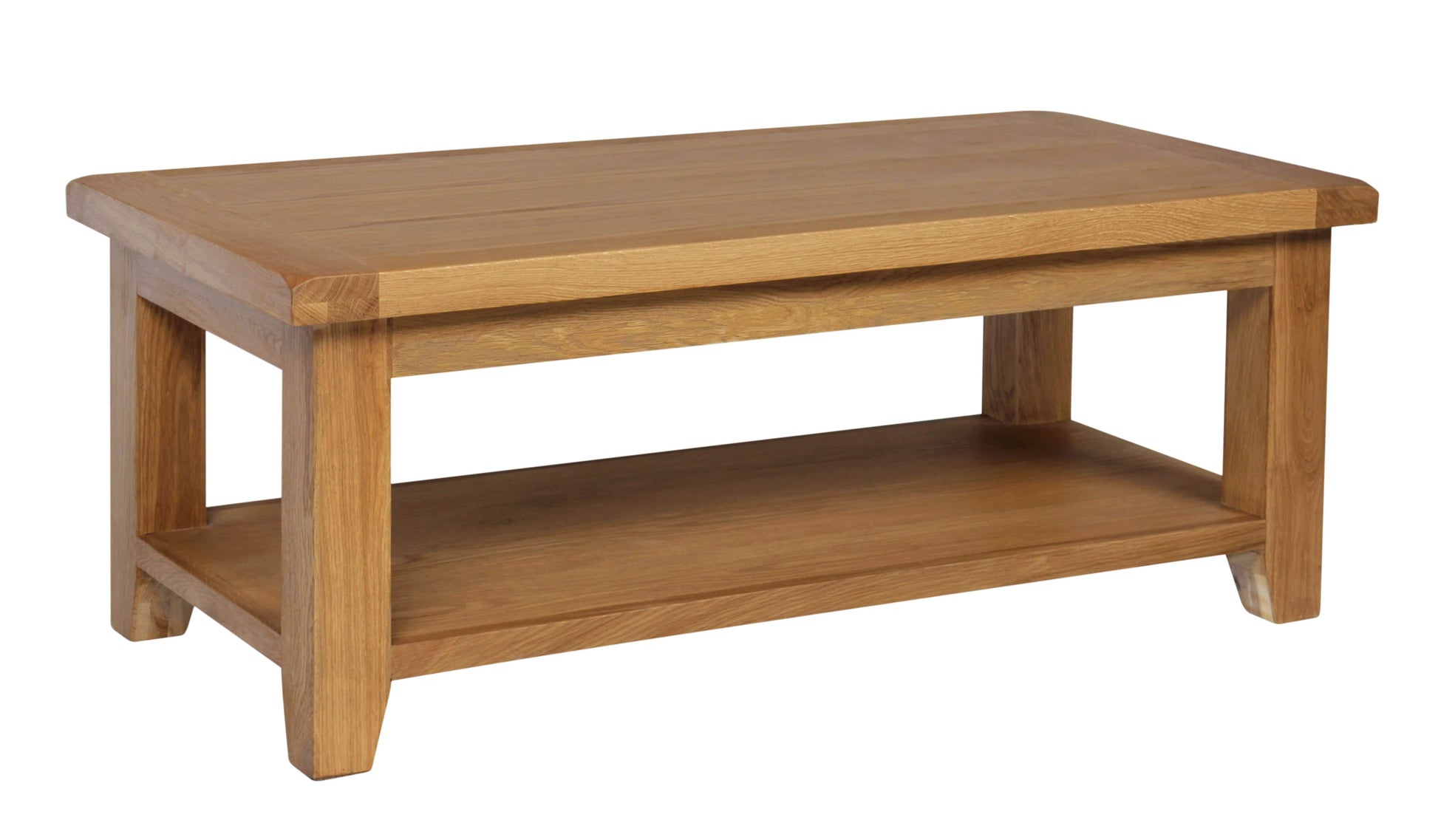Cette table imposante apportera la touche finale à votre salon et offrira une étagère sous vos magazines et livres préférés. Cette gamme traditionnelle, solide et imposante est livrée entièrement assemblée dans une finition chêne moyen aux angles arrondis.