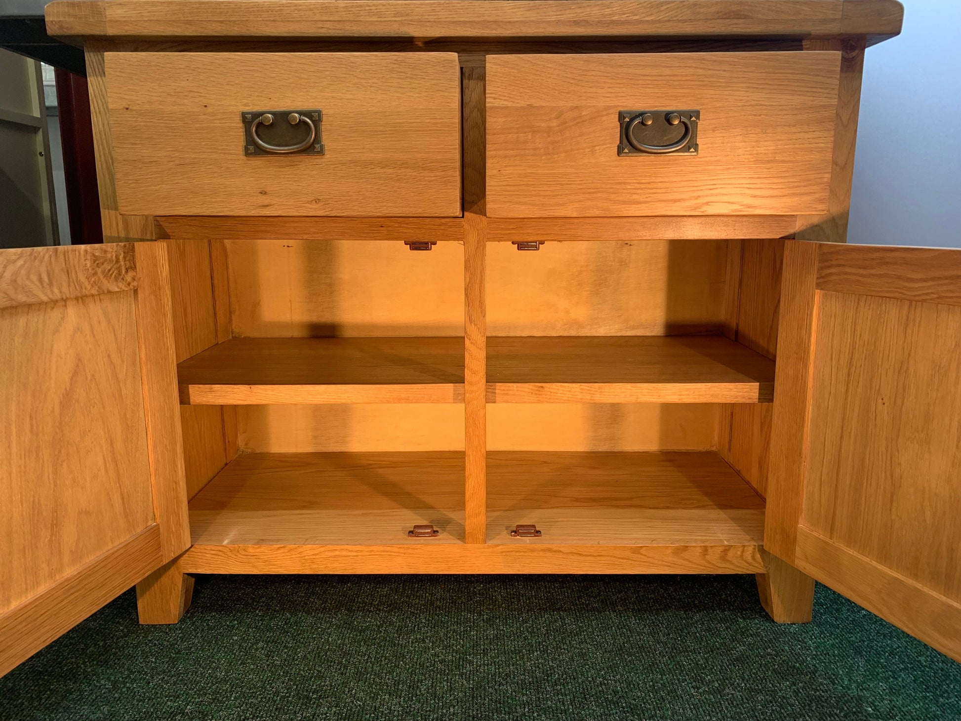 Associé à notre meuble bas populaire et à notre plateau ouvert à 3 tiroirs, il sera du plus bel effet contre n'importe quel mur. Cette gamme traditionnelle, solide et imposante est livrée entièrement assemblée dans une finition chêne moyen avec des angles arrondis et de jolies poignées en métal et boutons de porte assortis.