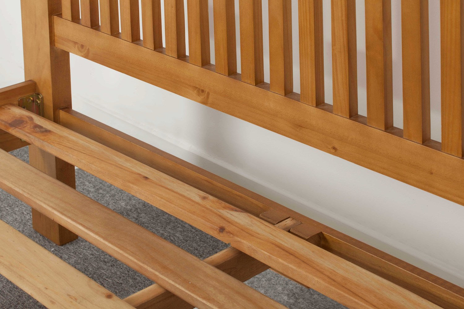 Le lit Rutland en pin massif offre un meilleur soutien pour vous et votre matelas grâce à ses lattes en bois indépendantes. Votre nouveau cadre de lit est livré à plat, ce qui facilite et accélère le montage à domicile. Le lit Rutland en pin massif est un ajout élégant et luxueux à toute chambre !