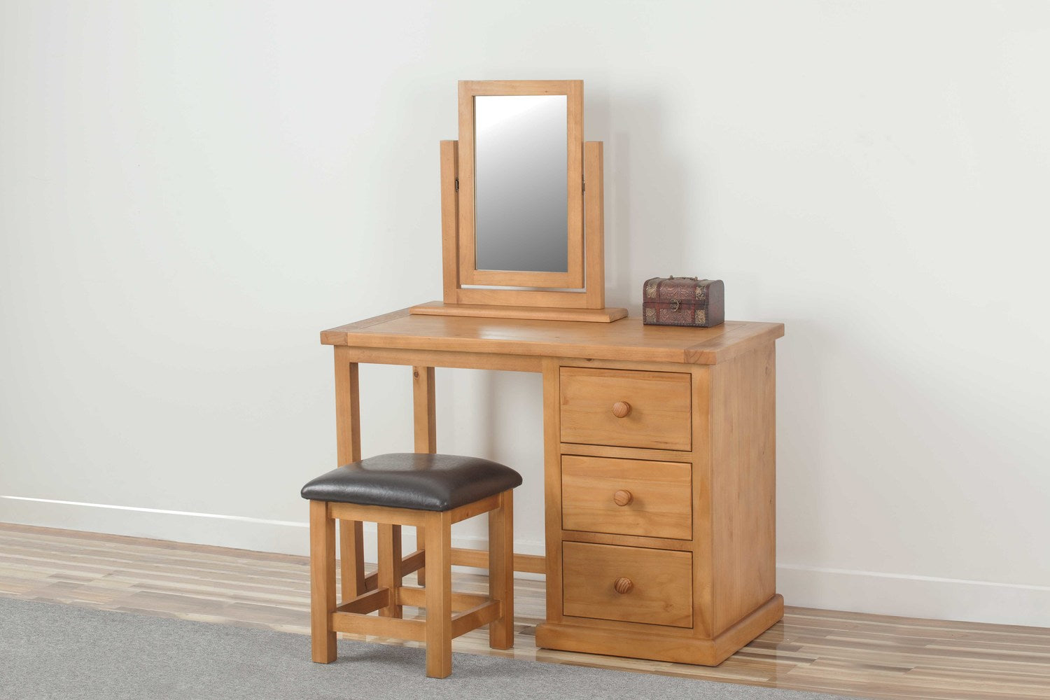 Cette coiffeuse en pin de notre gamme Rutland est très abordable tout en conservant une impression de qualité. Fabriquée avec soin grâce à des assemblages à queue d'aronde, elle est soigneusement traitée avec une couche de cire de pin de qualité supérieure, qui scelle le bois et le protège des bosses et des taches. Elle sublime et met en valeur la beauté naturelle du grain du bois, créant ainsi l'effet chaleureux et riche illustré.