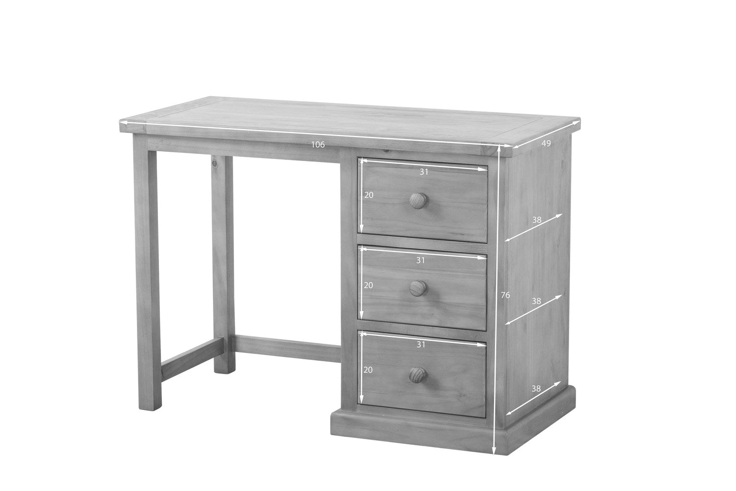Elle repose sur un socle robuste et ses trois tiroirs spacieux et massifs sont dotés de poignées en bois de qualité pour une touche de sobriété. La coiffeuse Rutland en pin massif est magnifiquement fabriquée en pin massif à 100 %. Grâce à sa finition soignée et à sa robustesse, elle restera belle et durable pendant de nombreuses années. Elle est livrée entièrement assemblée. La coiffeuse Rutland en pin massif est un ajout élégant et luxueux à toute chambre ! Elle peut être complétée par notre tabouret et notre miroir Rutland.