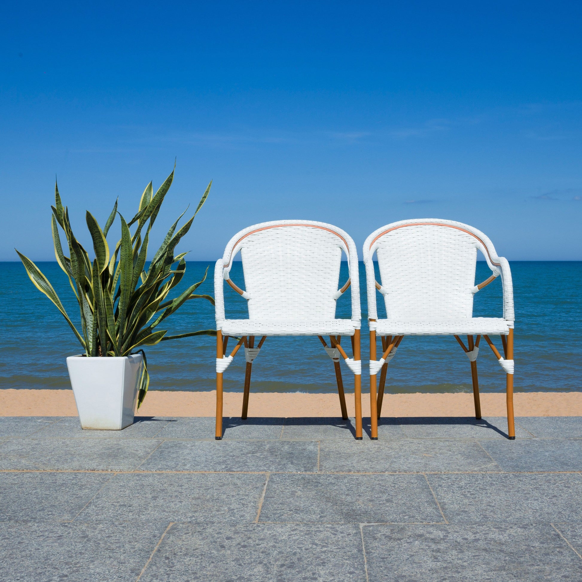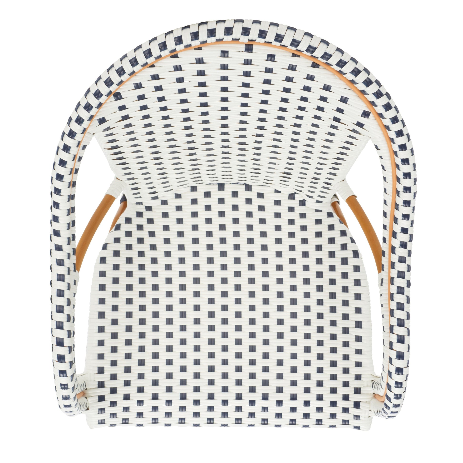 Complement any outdoor space with the breezy charm and warmth of our armchair. It updates the time-honored French bistro chair with a color palette. Its woven contours and sheltering arms offer easy comfort. Featuring faux wicker elegantly wrapped around an aluminum frame, our armchair captures textural beauty that can withstand the effect of sun, rain, and heat. Our lightweight and weather-friendly armchair can serve as a convenient, stylish, and comfortable spot to lounge or dine in your patio or terrace.