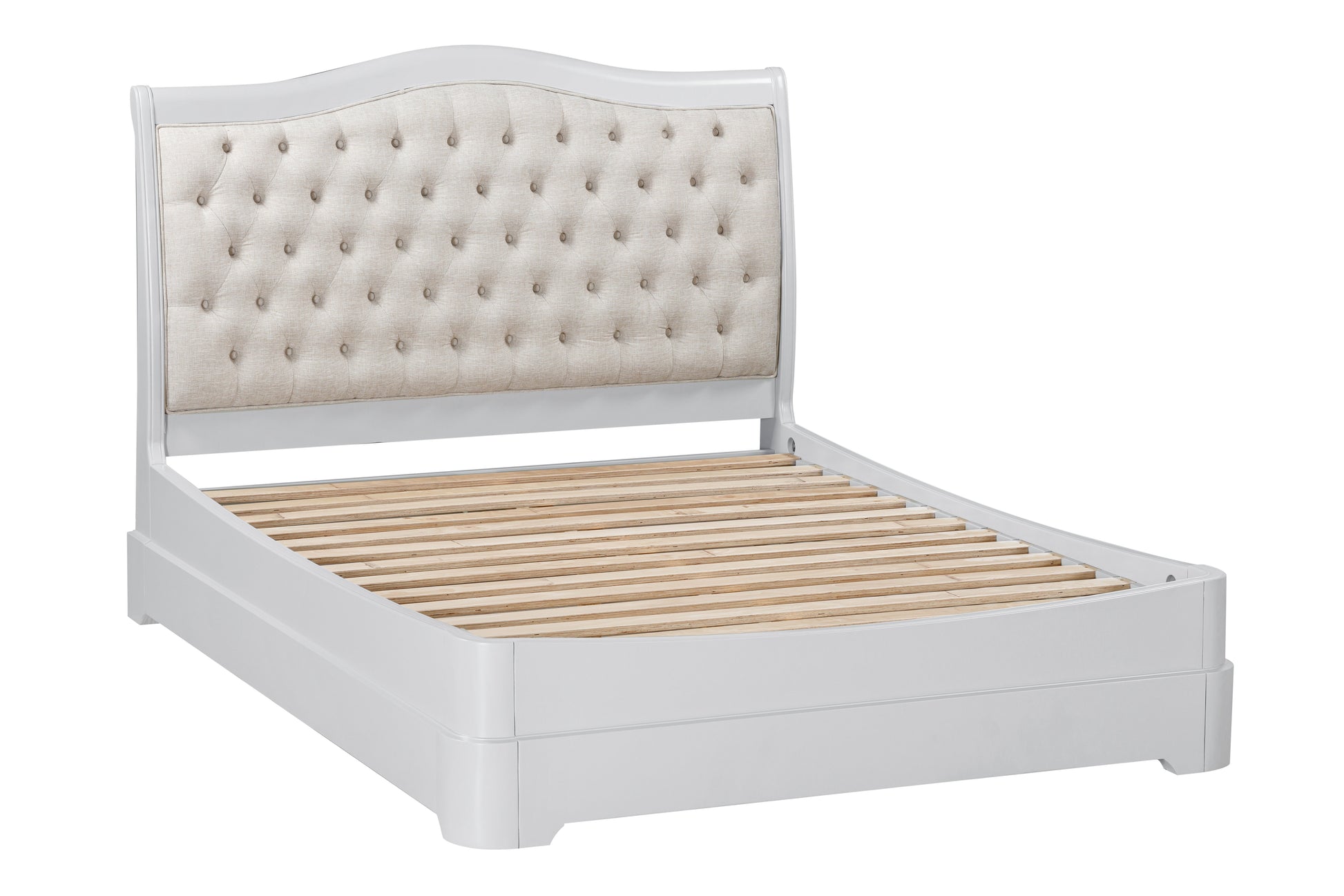 Ce charmant cadre de lit king size au style traditionnel et à la touche contemporaine est doté d'une tête de lit intégrée à boutons, dans un tissu contrasté, pour s'adapter à tous les intérieurs. Livré démonté pour un accès facile à votre intérieur. Assemblage minimal requis.