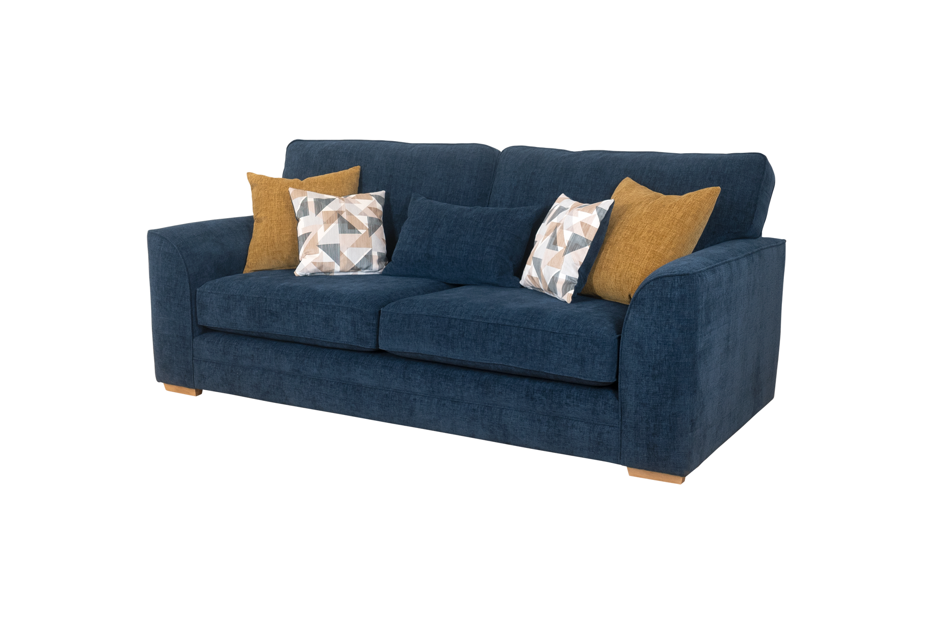 Cette gamme de style moderne se décline en quatre tailles de canapés, dont un charmant canapé « causeuse » et un fauteuil assorti, ainsi qu'un repose-pieds style banquette, qui complètent la collection. Cette gamme luxueuse est dotée de coussins d'assise en mousse ultra-douce et profonde, offrant un bon maintien, et de coussins de dossier en fibre ; une fois assis, vous ne voudrez plus vous en relever. Des coussins et traversins garnis de plumes sont fournis gratuitement avec tous les canapés plus grands, en tissu uni ou à motif coordonné. Disponible dès maintenant en huit coloris, dont un nouveau anthracite et trois nouveaux coloris et tissus (non présentés), mais visibles en magasin. Un choix de pieds clairs ou foncés est disponible. Ce canapé quatre places est divisible pour s'intégrer facilement dans tous les intérieurs. Un fauteuil et un repose-pieds style banquette assortis sont également disponibles. Également disponible en canapé d'angle.