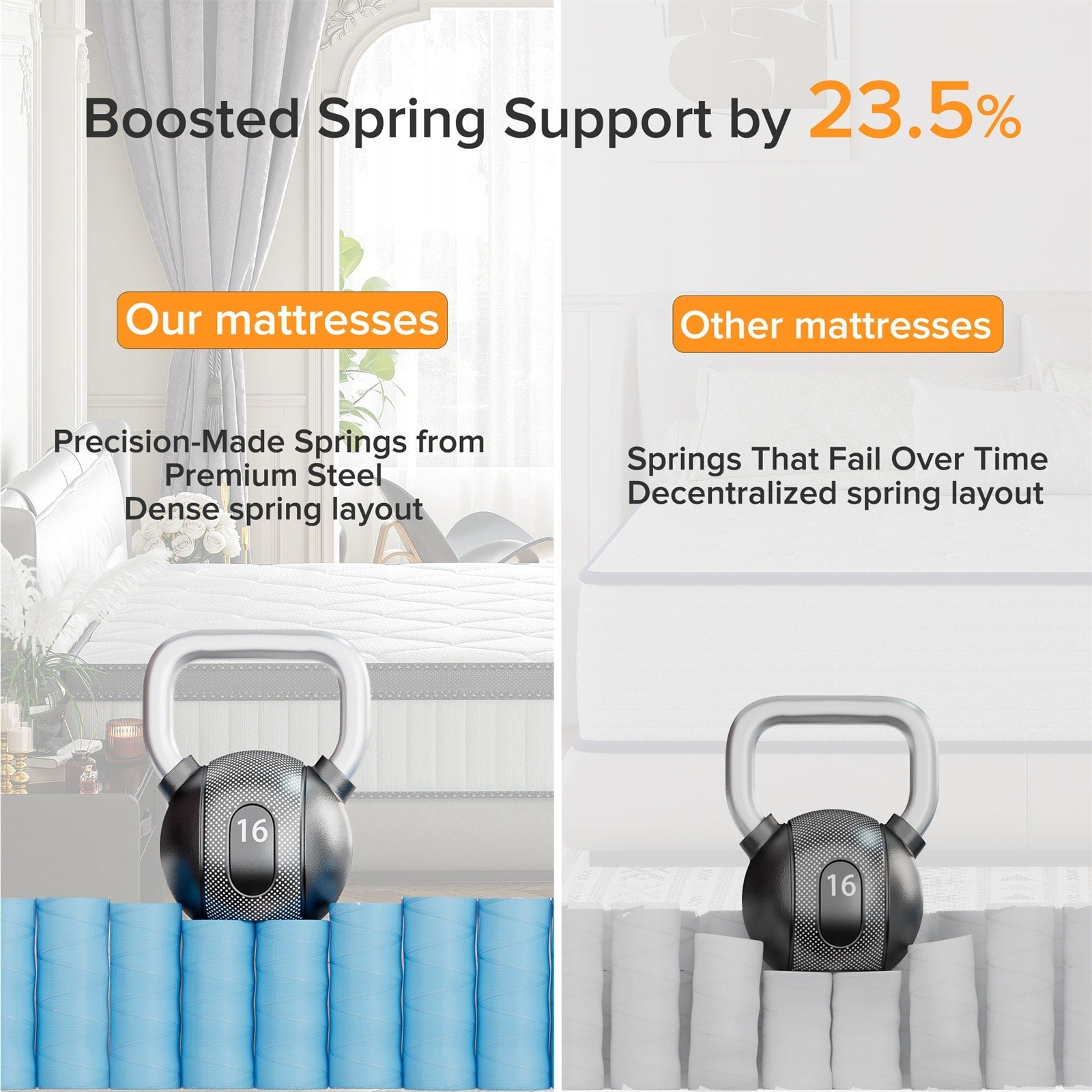 - Coil springs 23.5% thicker than market standard: Provides better support, longer lifespan, and prevents collapsing.
